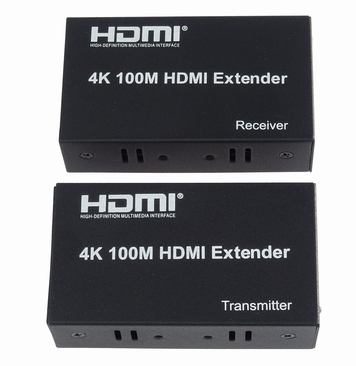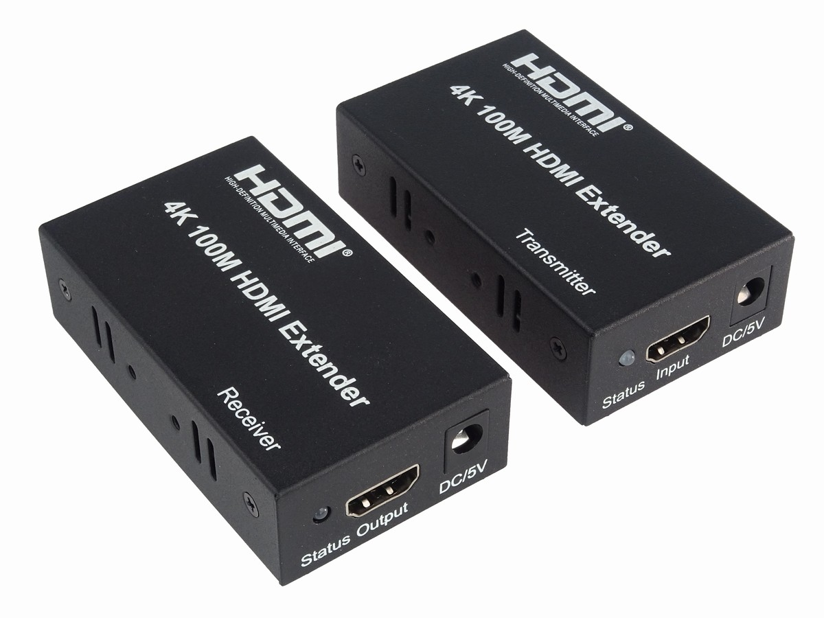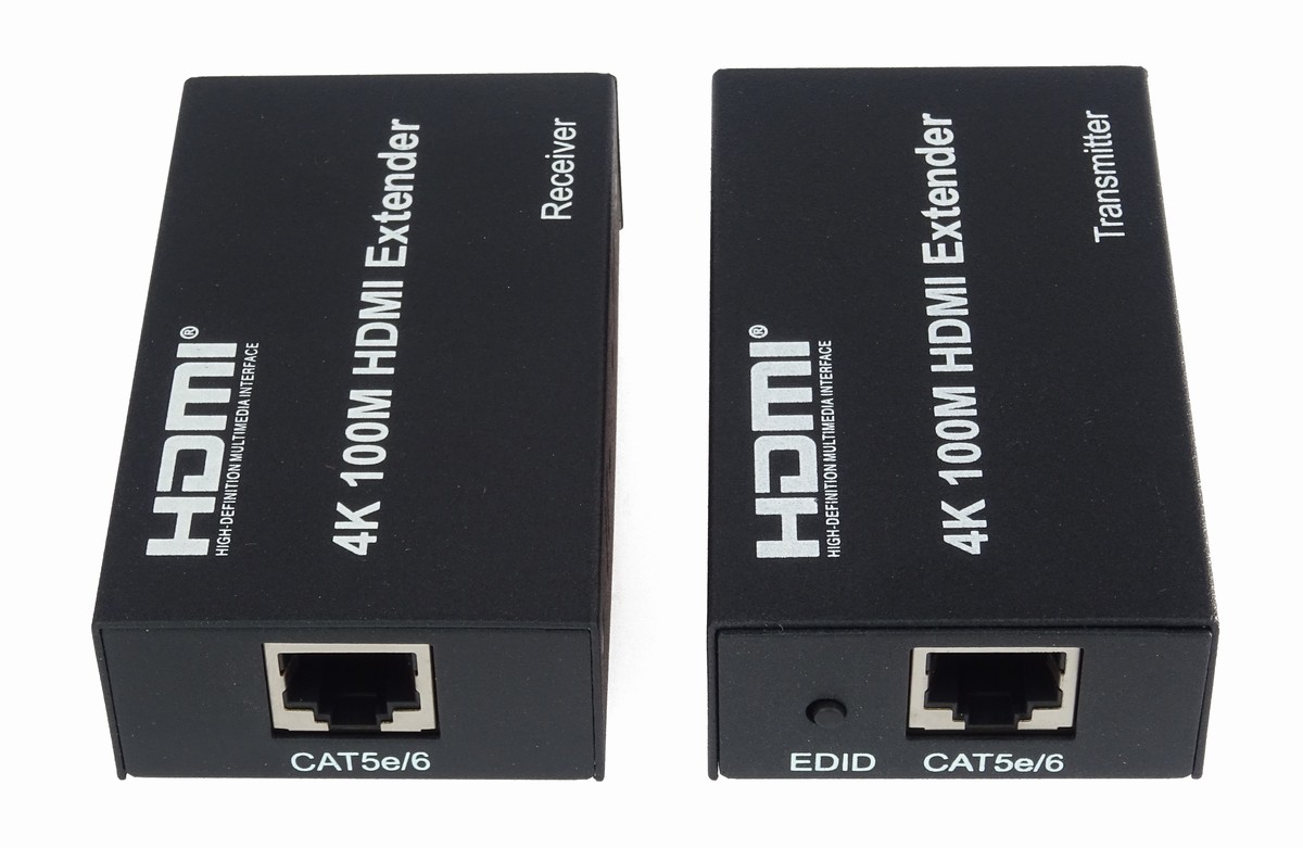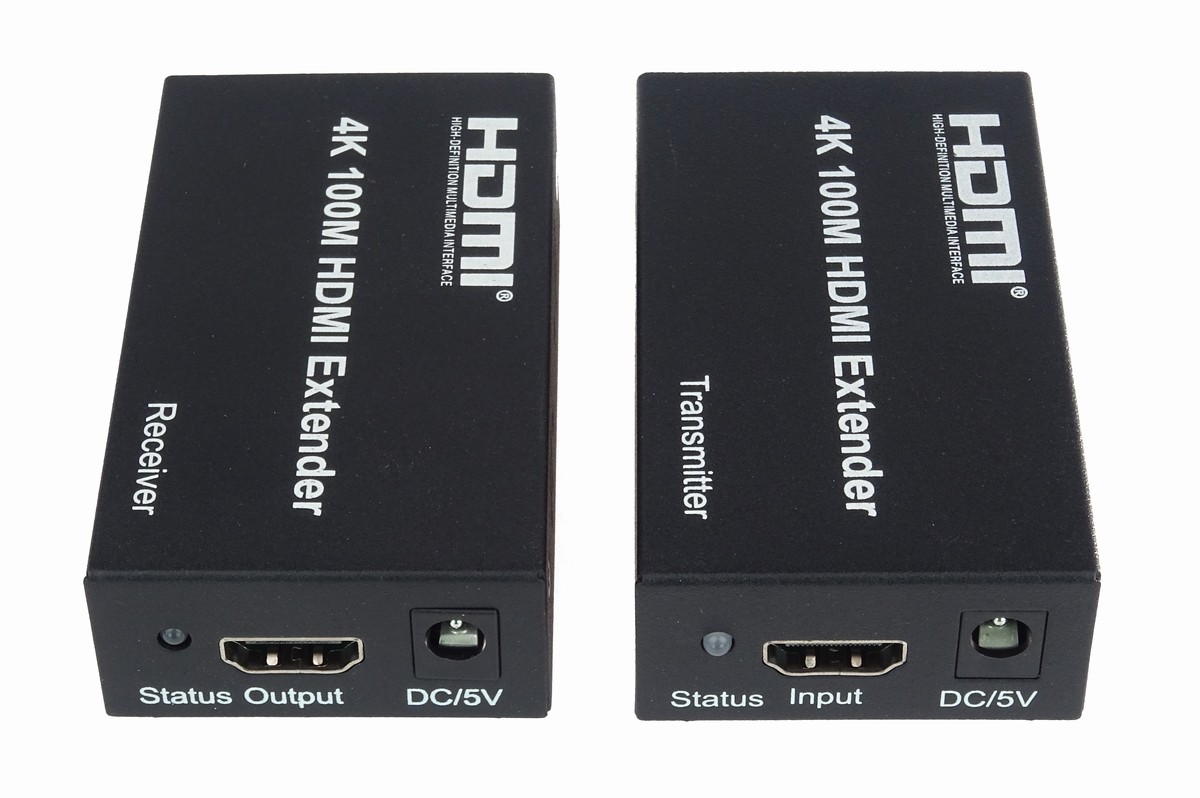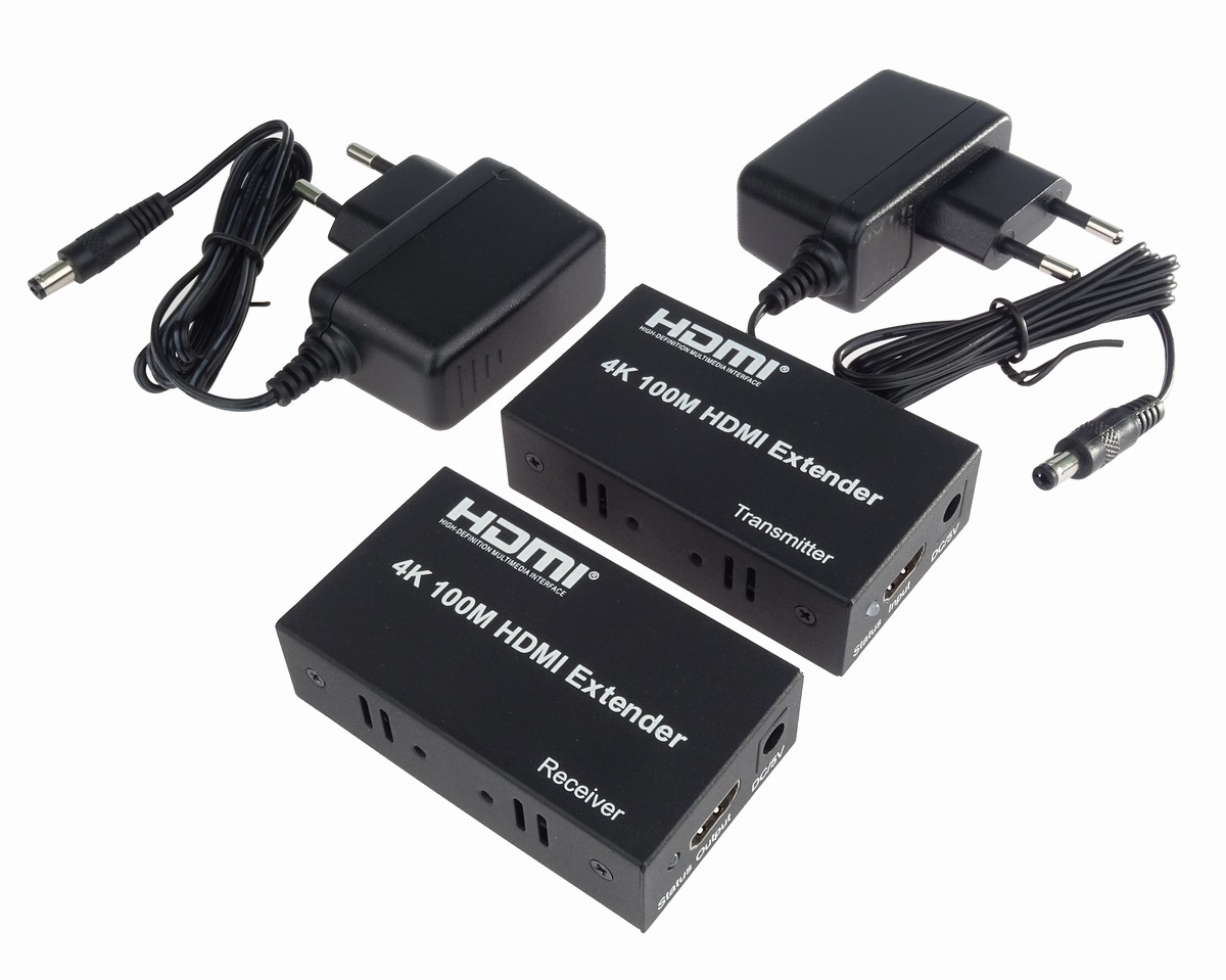 4K HDMI extender na 100m přes Cat5e/Cat6, zařízení umožňuje po jednom síťovém kabelu přenést HDMI signál v rozlišení 4K@30Hz nebo FULL HD 1080p až na 100m.Dále přenáší IR signály pro dálkové ovládání. Vysílač a přijímač má audio výstup pro zesilovač.