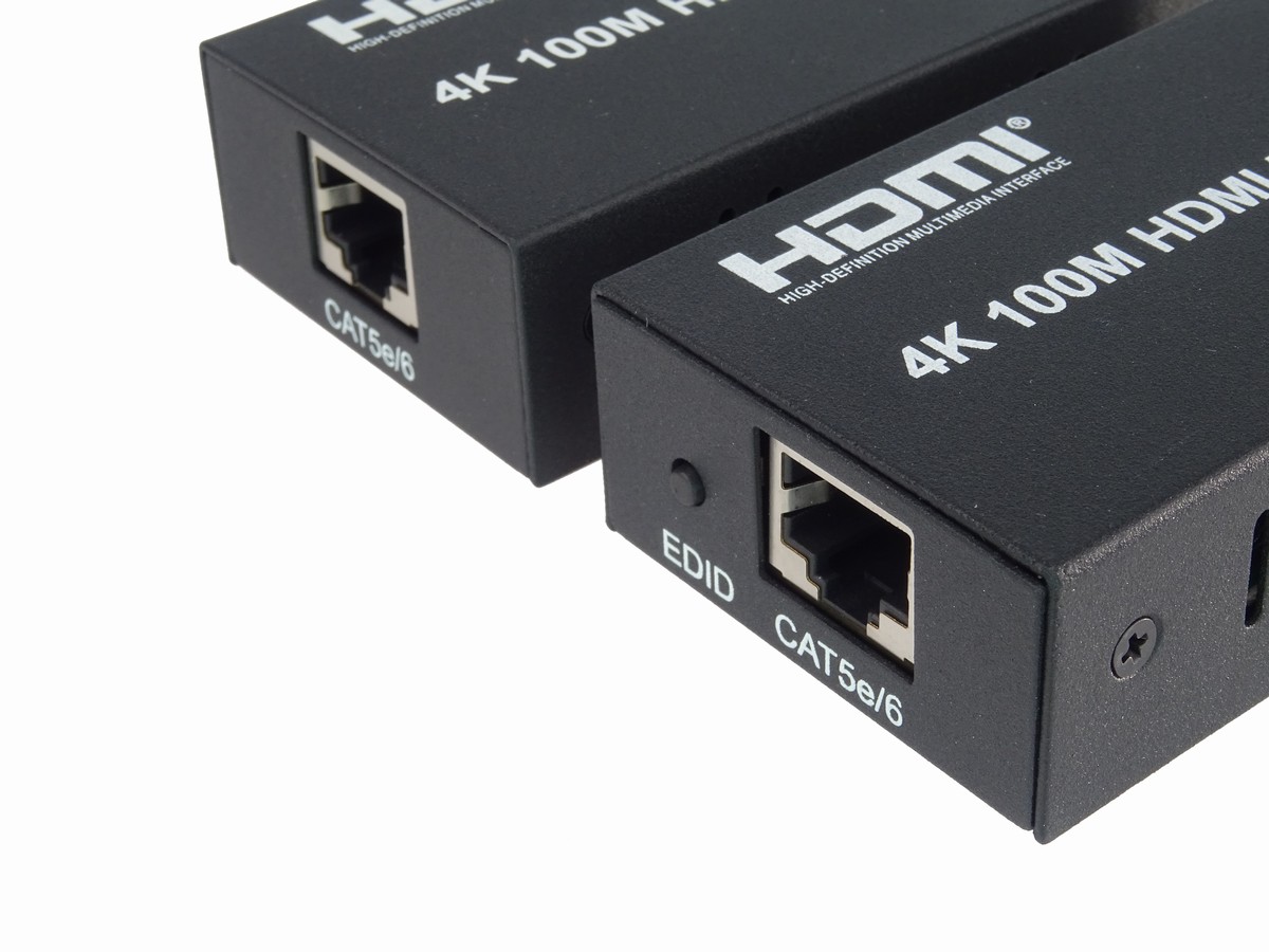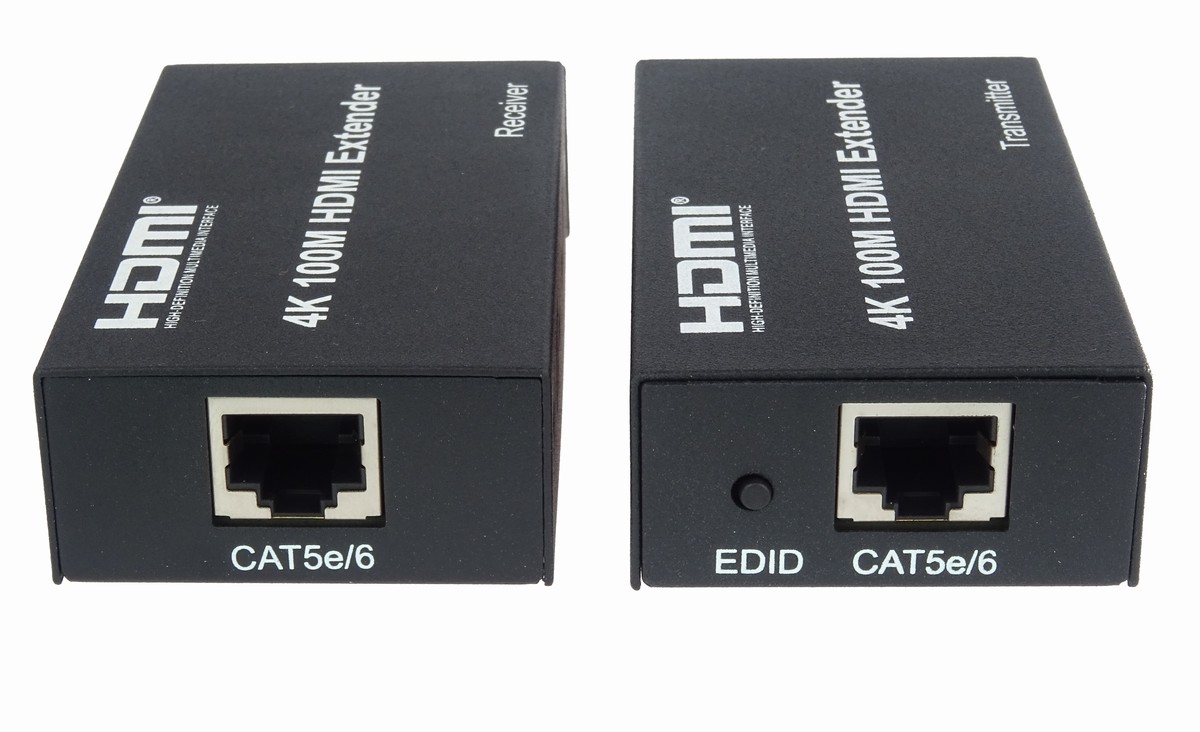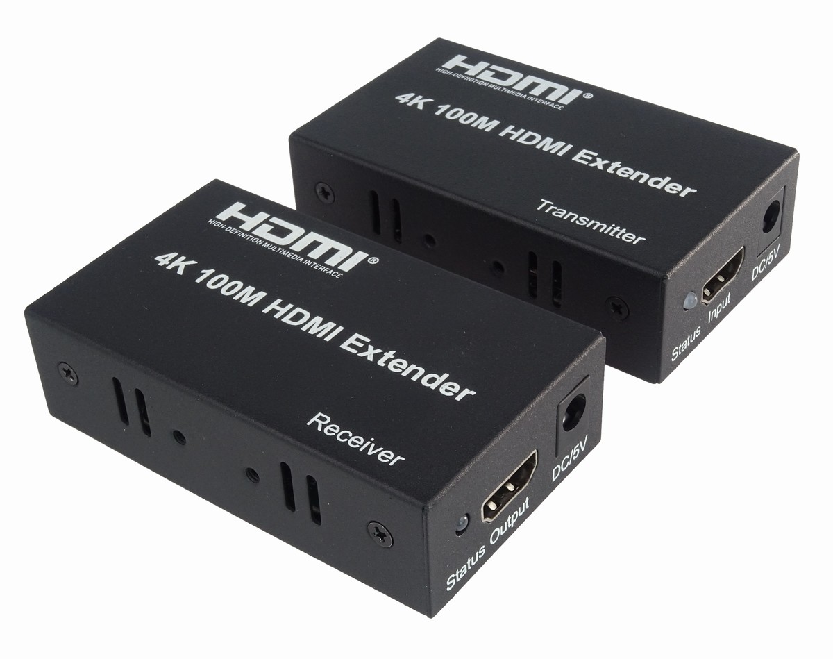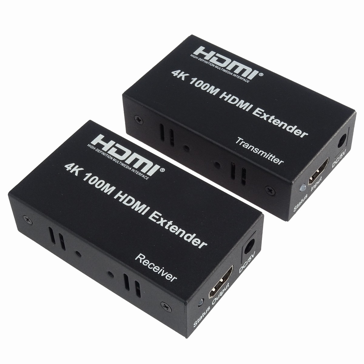 4K HDMI extender na 100m přes Cat5e/Cat6, zařízení umožňuje po jednom síťovém kabelu přenést HDMI signál v rozlišení 4K@30Hz nebo FULL HD 1080p až na 100m.Dále přenáší IR signály pro dálkové ovládání. Vysílač a přijímač má audio výstup pro zesilovač.