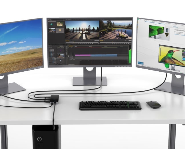 - MST adapter umožní rozšířit stávající plochu na dva nebo tři monitory nebo ji zrcadlit na další monitor. Umožňuje také pracovat na dvou/třech různých obrazovkách současně. Udělejte si svůj pracovní den více zábavný a pohodlnější, pracujte na více obrazovkách současně.