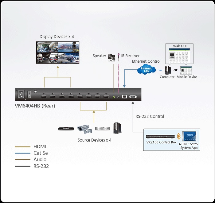 Přepínač integruje funkčnost videostěny s snadno použitelným webovým grafickým uživatelským rozhraním, které vám umožní vytvořit až 8 profilů připojení, které lze přizpůsobit různým rozvržením videostěn.