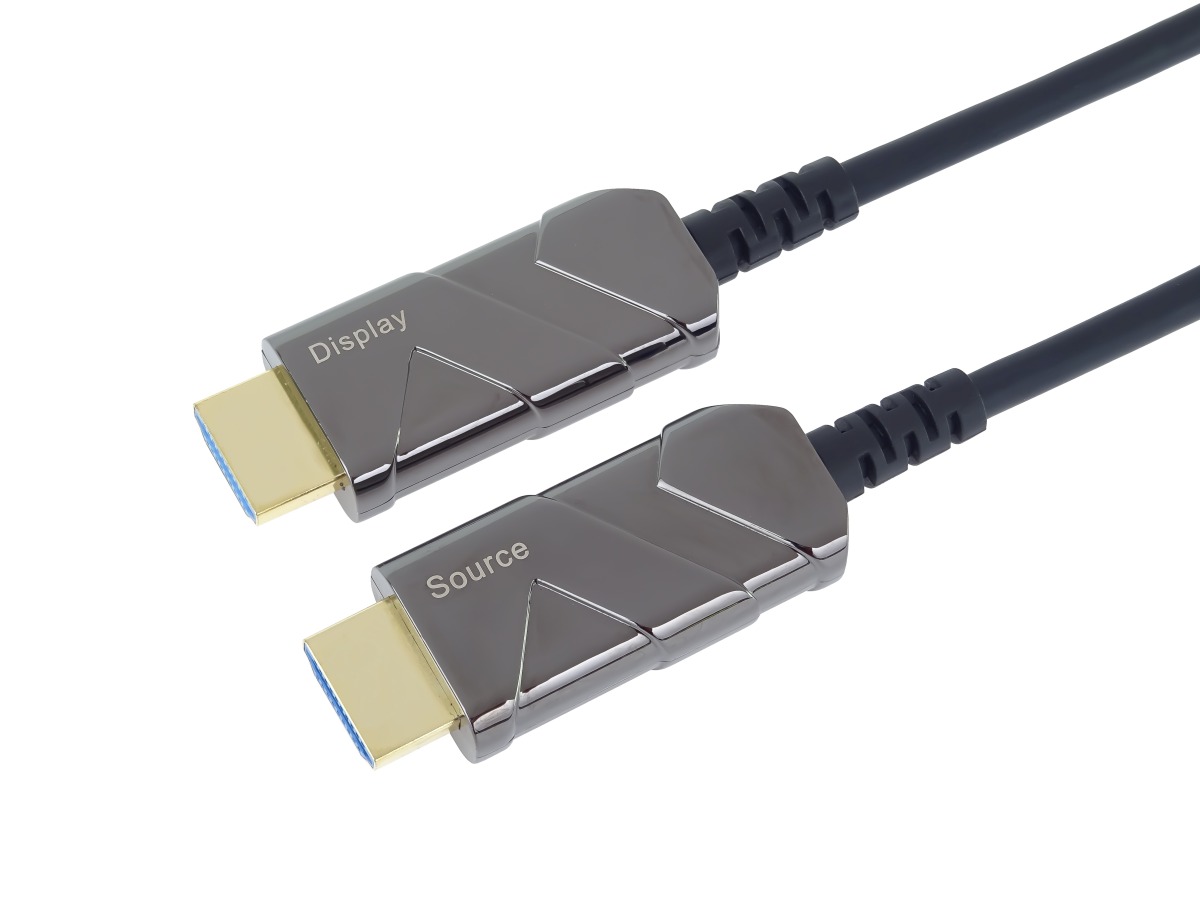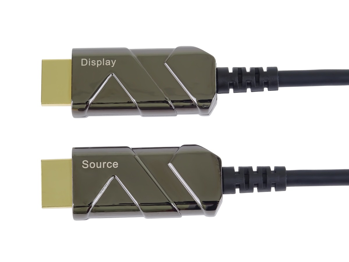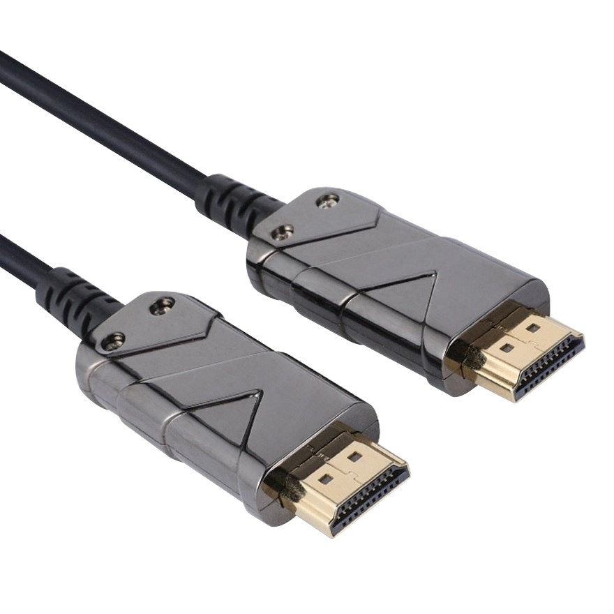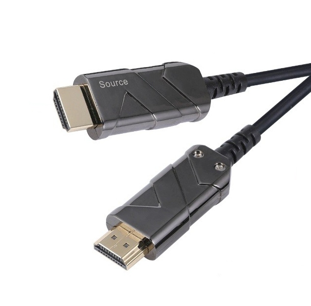 - Optický AOC kabel se vyznačuje vynikajícím přenosem signálu na velké vzdálenosti beze ztrát, je odolný proti elektromagnetickému rušení a dává nejlepší možný obraz ve srovnání s metalickými kabely.