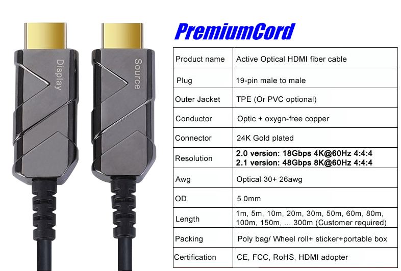 - HDMI 2.1 Ultra High Speed aktivní optický fiber kabel, podporuje HDMI2.1 nebo nižší HDMI2.0 a HDMI1.4