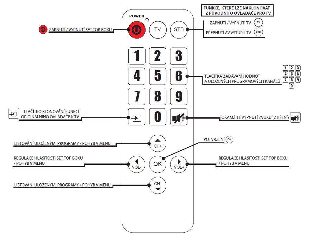 Dálkový ovladač pro seniory pro set-top box EM190 / EM190S