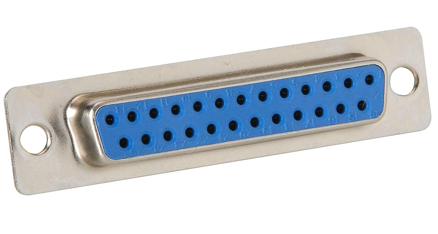 Konektor Canon 25M kabelový, D Sub konektor DB25M, pohlaví: male, kabelový pájecí konektor, počet pinů 25pin, počet řad 2, poniklované provedení