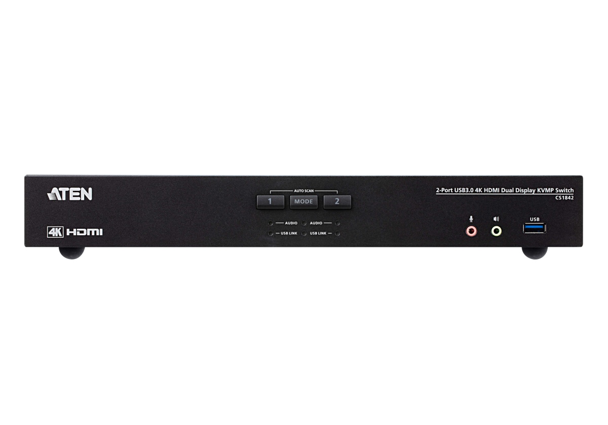 Přepínač ATEN CS1842 Dual Display KVMP ™ představuje cenné řešení pro stolní pracovní stanici s okamžitým a snadným přístupem ke dvěma počítačům s rozhraním HDMI z jediné klávesnice USB, myši a dvou monitorů HDMI; Aby vyhovoval potřebám uživatelů, je CS1842 kompatibilní se standardem HDMI 2.0 a podporuje vynikající kvalitu videa až do 4K DCI (4096 x 2160 @ 60 Hz) a nabízí nejúžasnější a nejživější vizuální prvky.