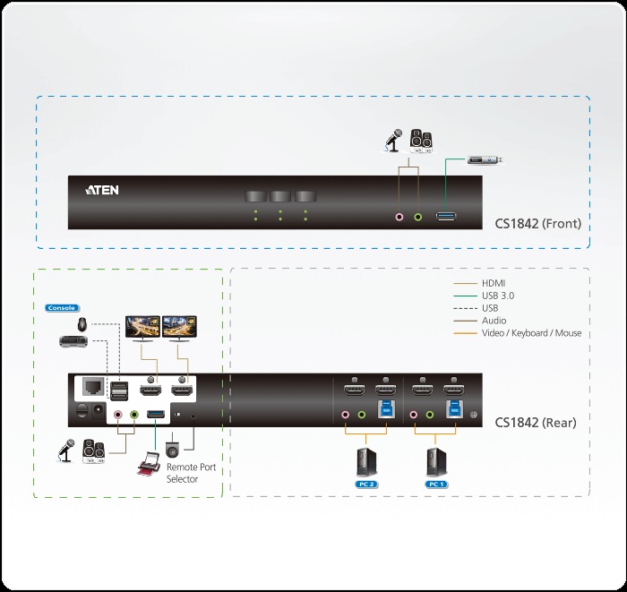 ATEN 2-port USB3.0 4K HDMI KVMP, audio