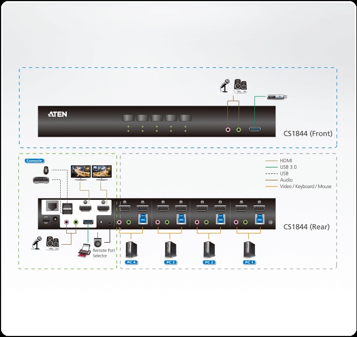 ATEN 4-port USB3.0 4K HDMI KVMP, audio
