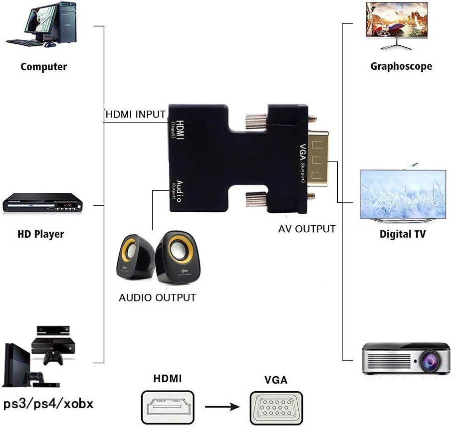 - Adaptér je určen pro počítače nebo notebooky s výstupem HDMI, pro převod obrazu na starší analogové VGA monitory.