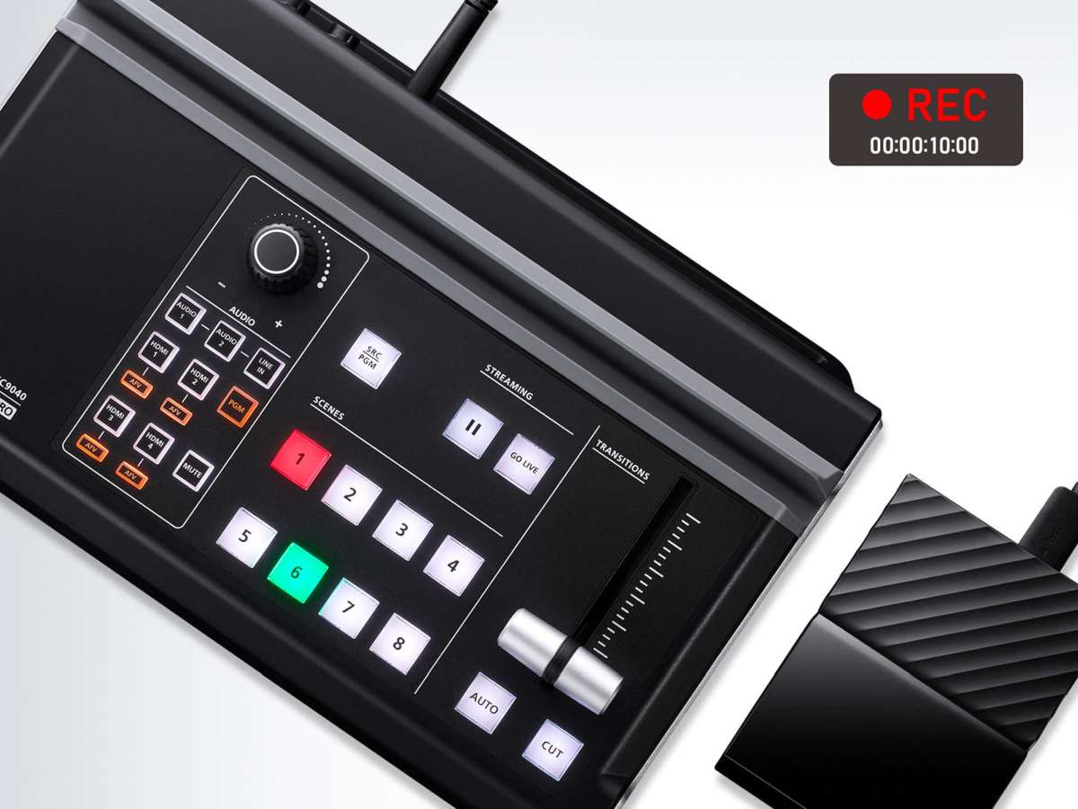 - Kompaktní ovládací panel mixéru - Přepínání a mixování mezi více zdroji videa a zvuku pomocí snadno identifikovatelných světelných kláves
