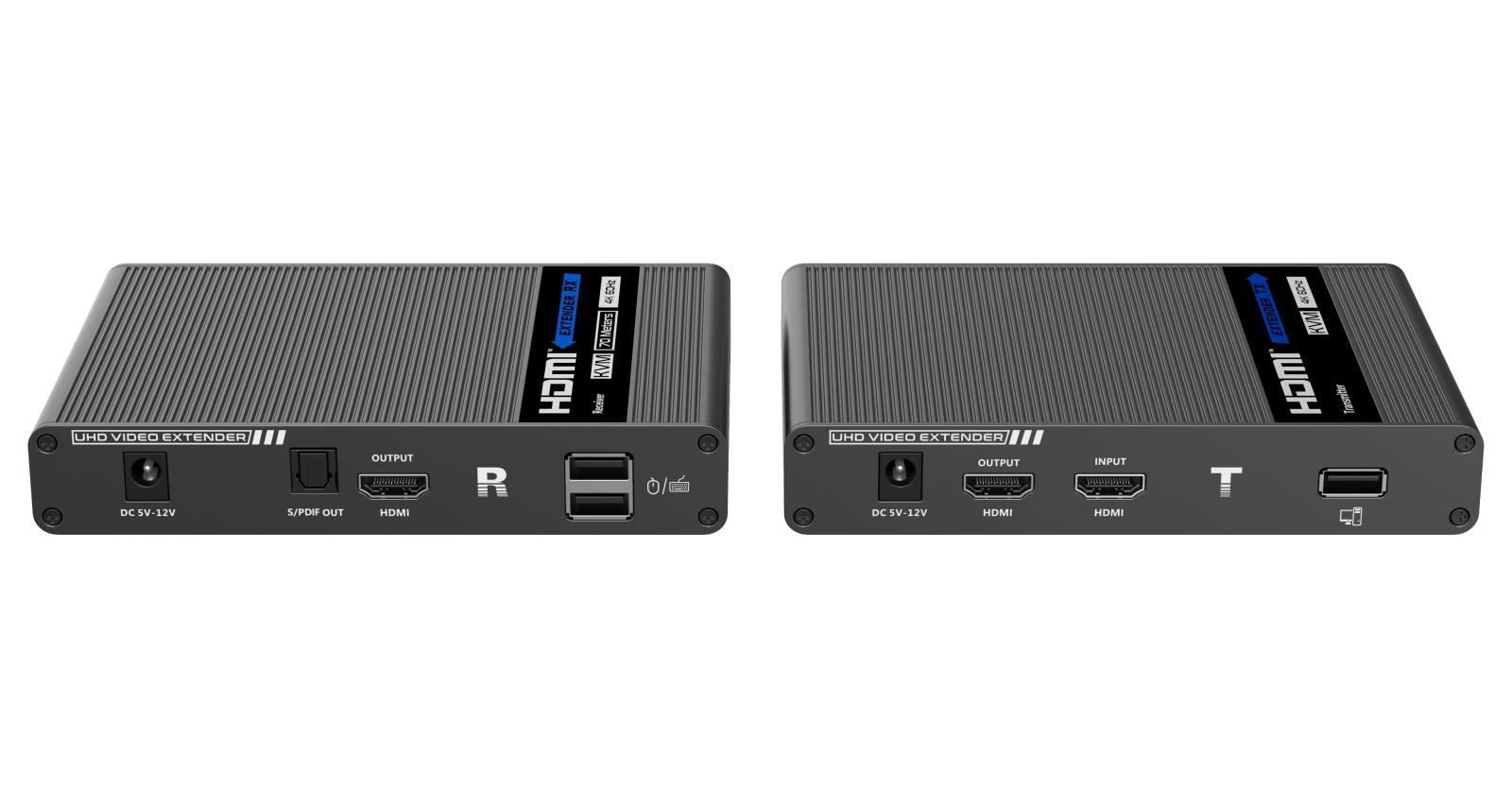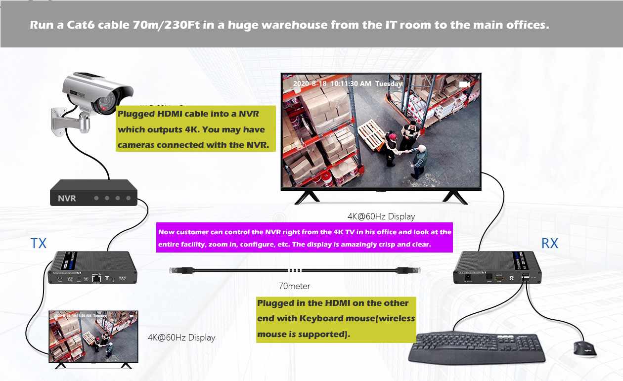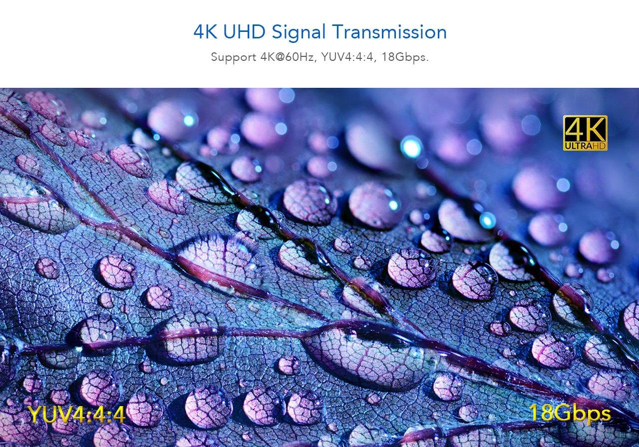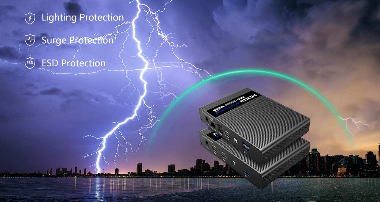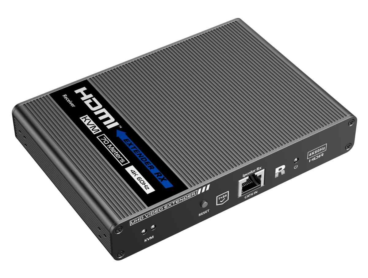 Umožňuje distribuovat HDMI signál o vysokém rozlišení 4K@60Hz bez zpoždění až na 70 metrů a přenášet zároveň USB (například klávesnici, myš nebo jiné USB periferie)