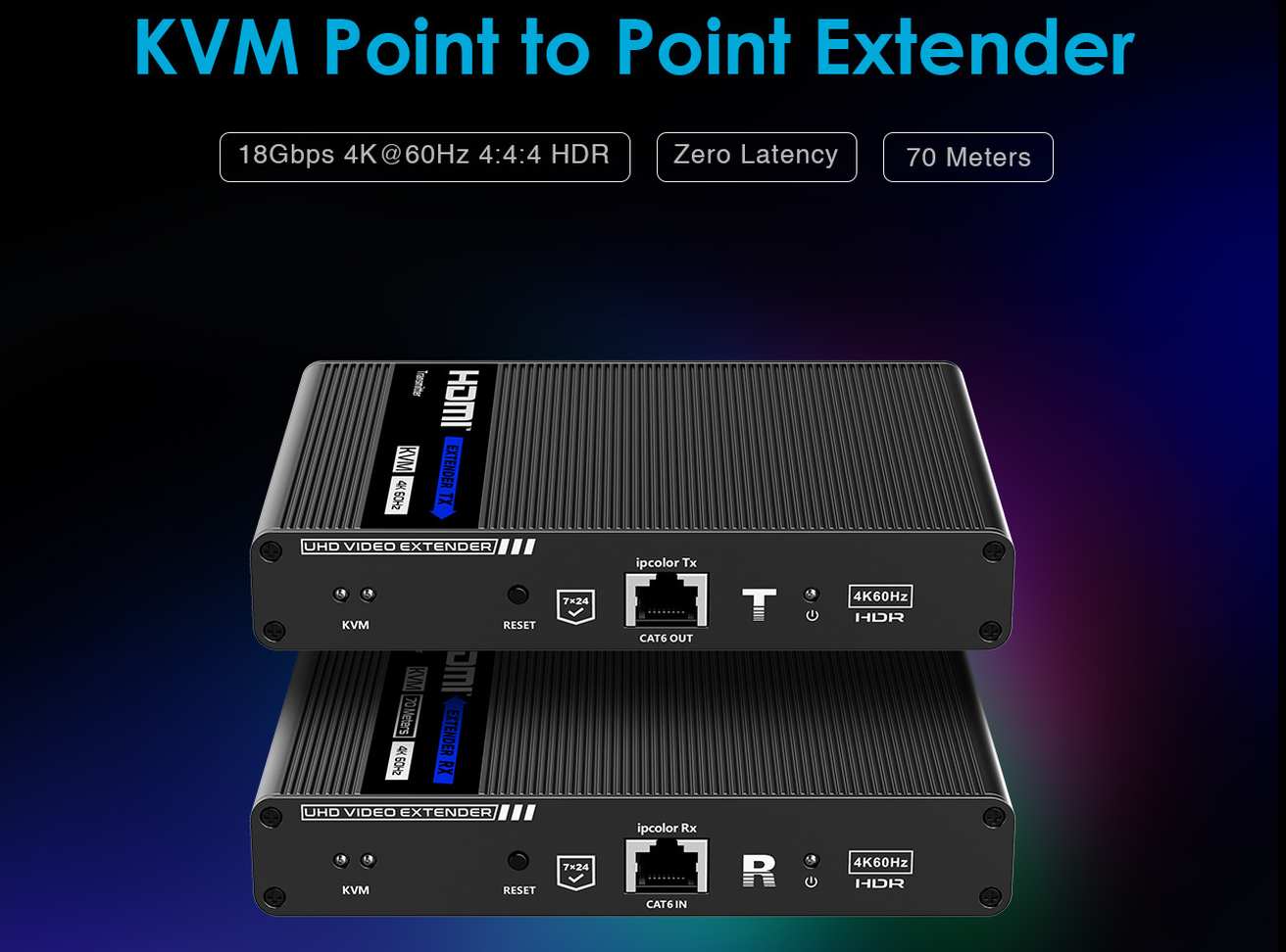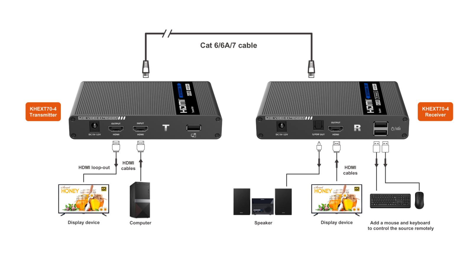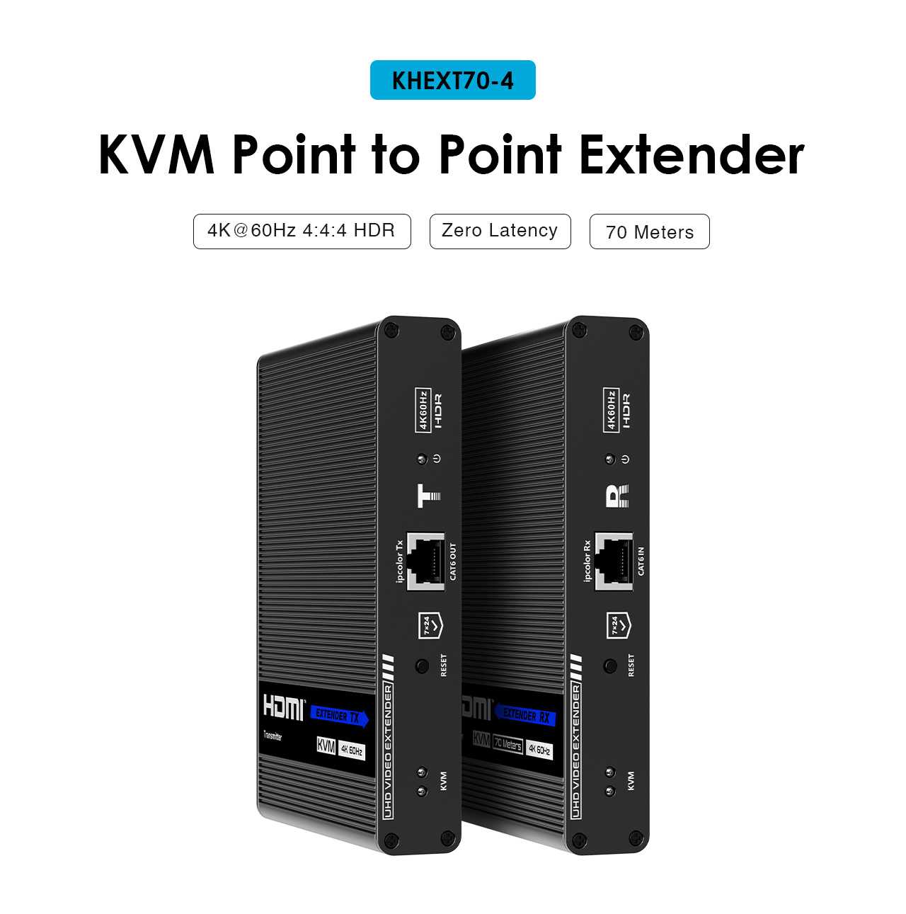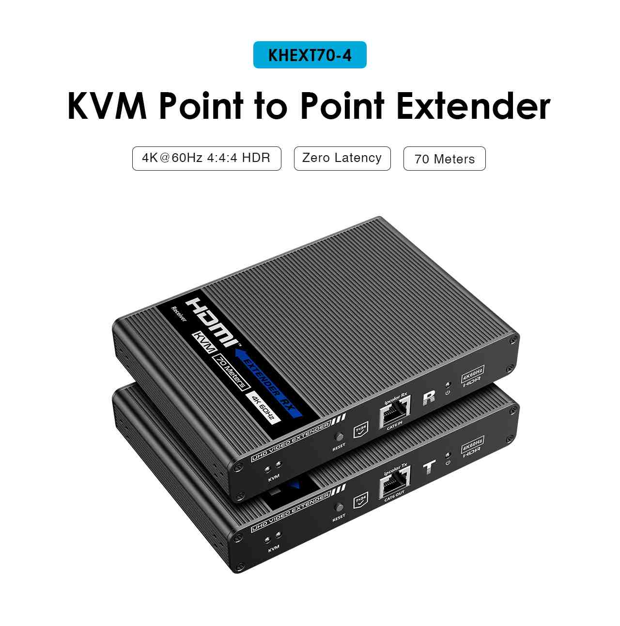 Umožňuje distribuovat HDMI signál o vysokém rozlišení 4K@60Hz bez zpoždění až na 70 metrů a přenášet zároveň USB (například klávesnici, myš nebo jiné USB periferie)