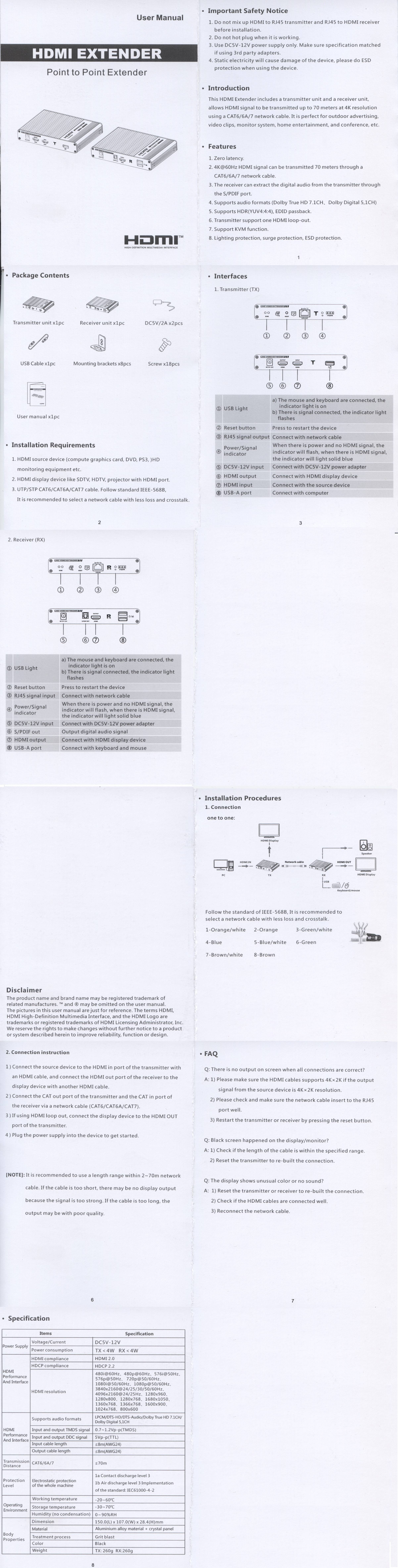 - Podporuje rozlišení 4K2K/60Hz (HDR, 4:4:4) , HDMI extender až do 70 metrů