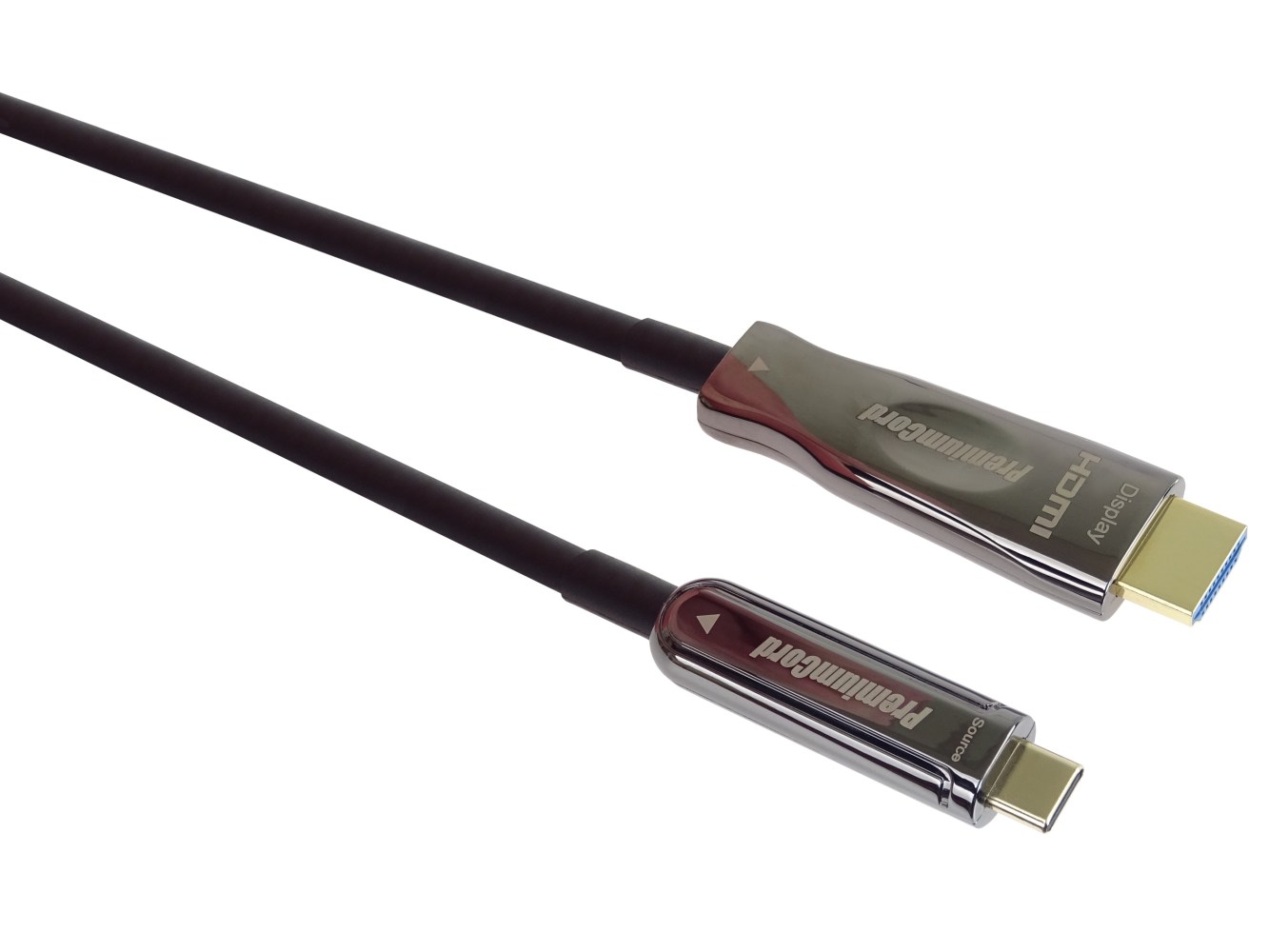 - Optický kabel USB-C na HDMI podporuje HDMI 2.0b až 3840 x 2160 při 60 Hz. Tento kabel adaptér USB-C na HDMI přenáší také zvuk, včetně SACD, DVD-Audio, DTS-HD Master Audio a Dolby TrueHD
