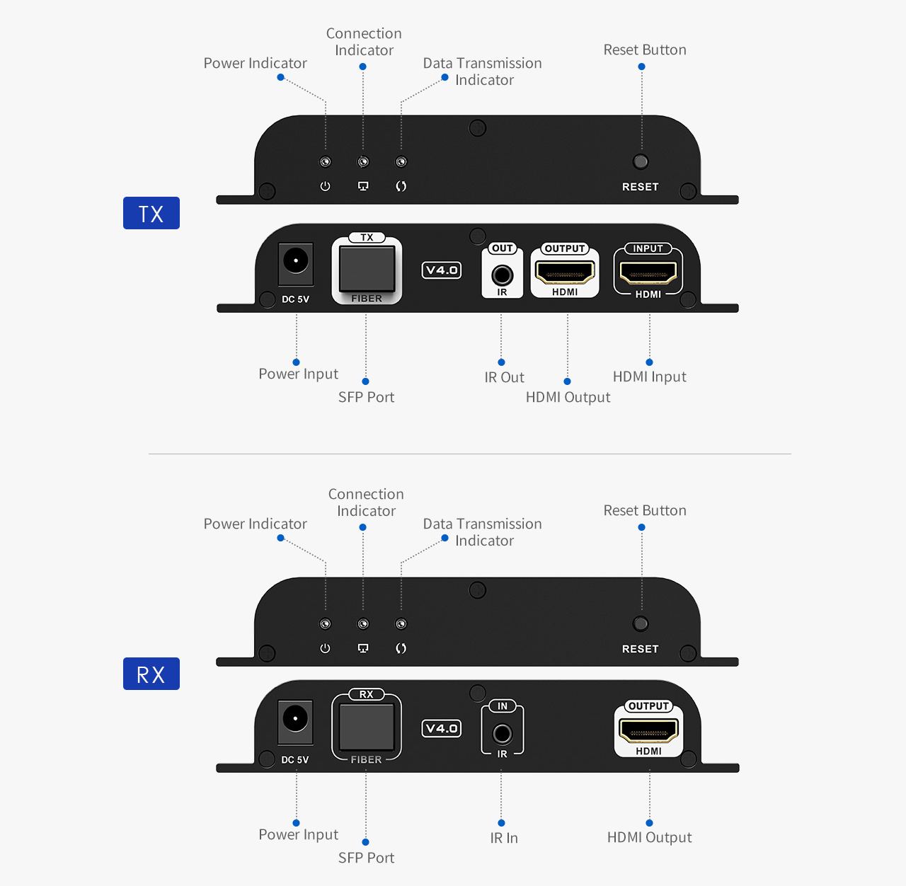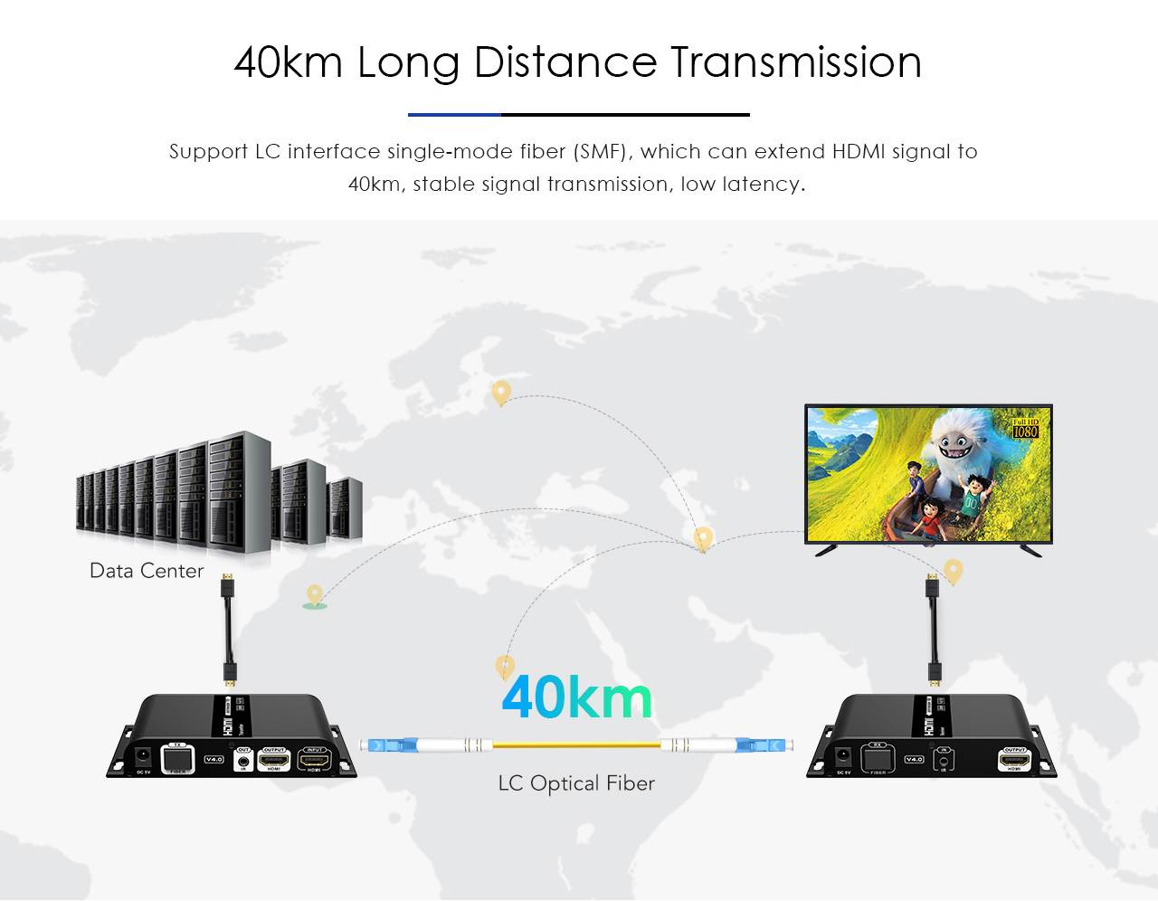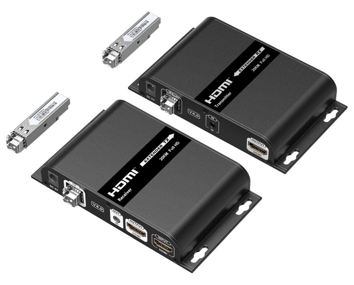 Přenášejte obrazové a zvukové signály HDMI na vzdálenost až 40 km pomocí optických kabelů. Kromě toho můžete přenášet signály dálkového ovládání IR do zdrojového zařízení. Zdrojové zařízení tak můžete ovládat z přijímače. Pomocí tohoto vysoce výkonného video systému můžete napájet až 16 přijímačů na vzdálenost až 5 km pomocí dalšího optického přepínače. Tři LED diody na přední straně vysílače a přijímače vás vždy informují o stavu zařízení. Tato sada se skládá z modulu vysílače a přijímače a je zvláště vhodná pro přenos signálů HDMI na velké vzdálenosti. Ideální pro spojení mezi budovami nebo velkými průmyslovými komplexy.