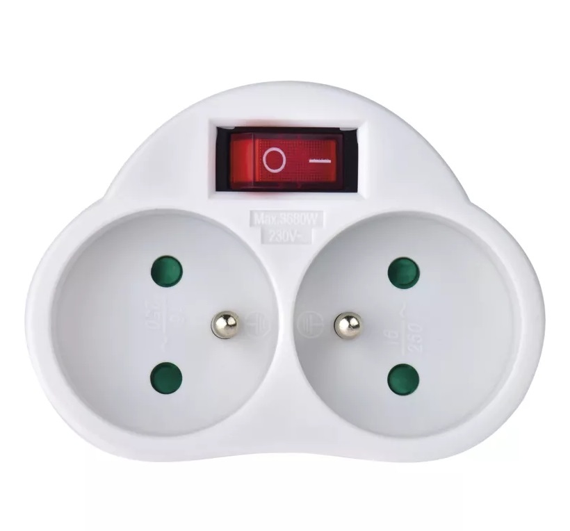 - 1x kulatá zástrčka - 2x kulatá zásuvka + vypínač