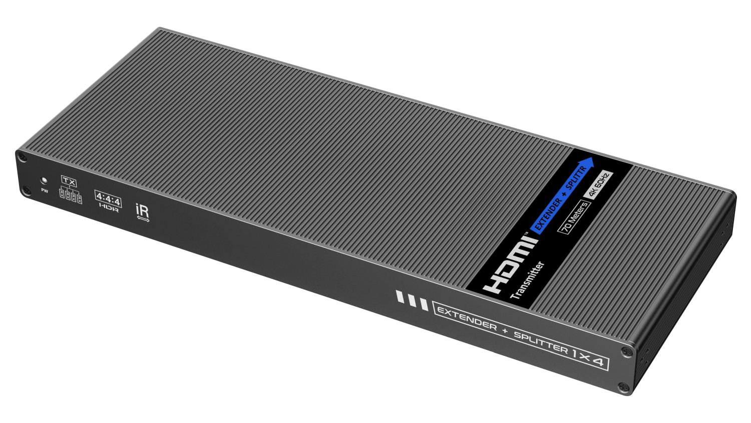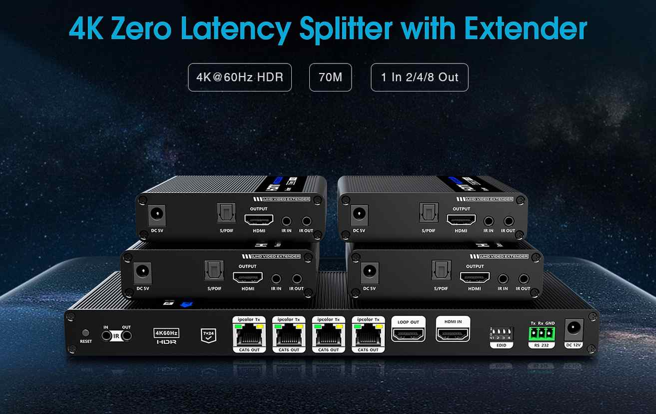 Splitter+extender umožňuje připojit až čtyři HDMI monitory na vzdálenost 70m a zobrazit UHD 4K@60Hz až na 70m