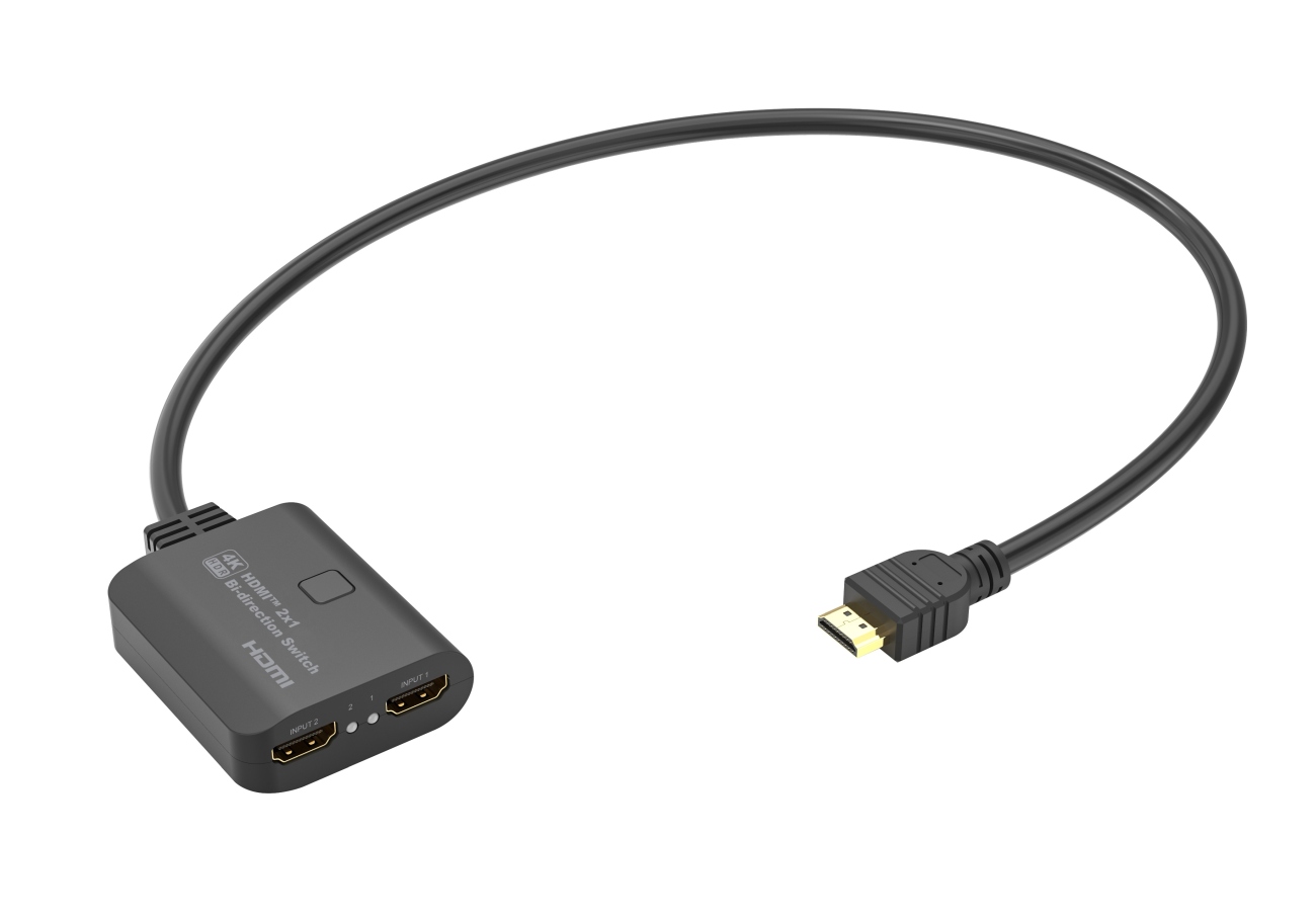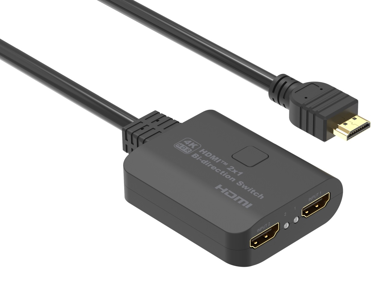 PremiumCord HDMI Switch 4K, FULL HD 1080p obousměrný 2-1 nebo 1-2, dvě HDMI zařízení sdílejí 1 HDMI obrazovku nebo přepínač z jednoho zdroje HDMI signálu přepíná na dva monitory (vždy se zobrazuje obraz pouze na jednom z monitorů),výběr za pomoci tlačítka