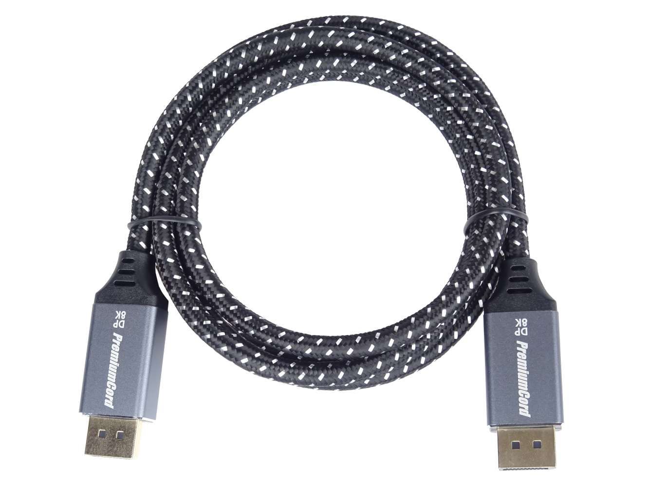 PremiumCord DisplayPort 1.4 přípojný kabel M/M pro rozlišení 8K, kovové krytky a zlacené konektory, kabel je vybaven standardem DisplayPort 1.4 a poskytuje obzvláště vysokou šířku pásma, ideální pro plynulé přehrávání obrazu bez trhání obrazovky.