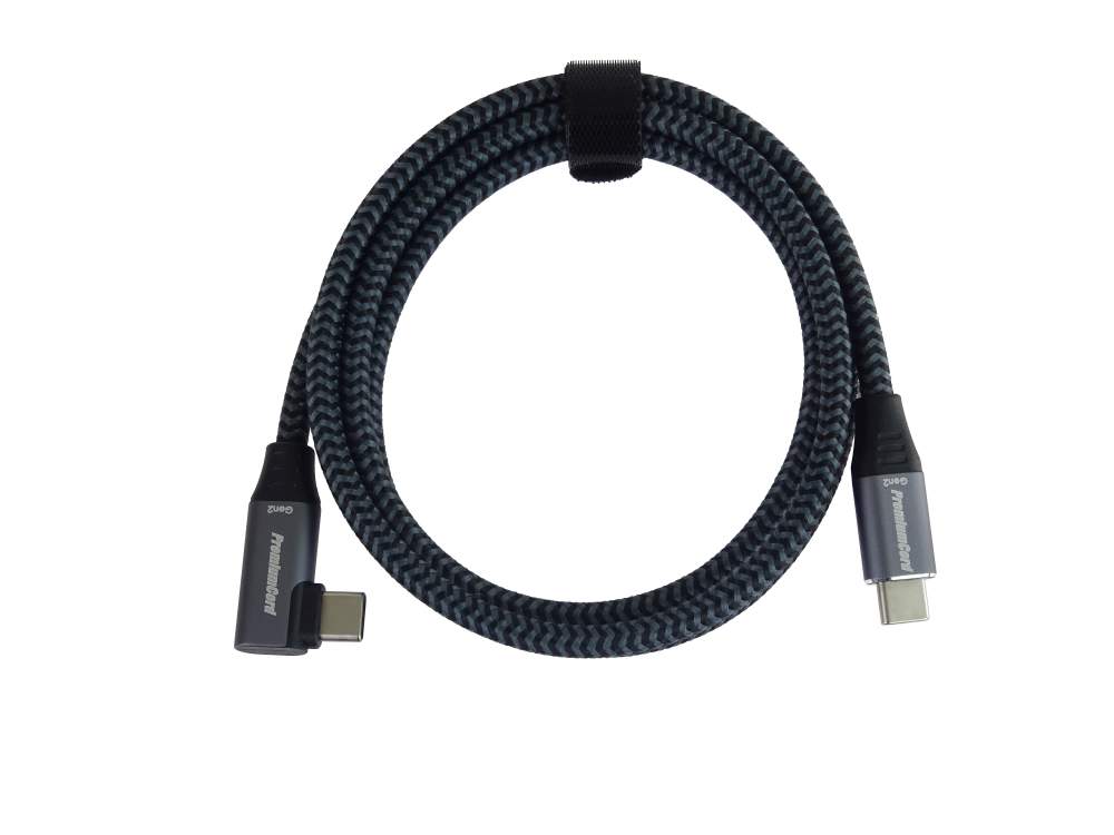 PremiumCord USB-C zahnutý kabel ( USB 3.2 GEN 2x2, 5A, 100W, 20Gbit/s ) 1m hliníkové krytky konektorů, bavlněný oplet