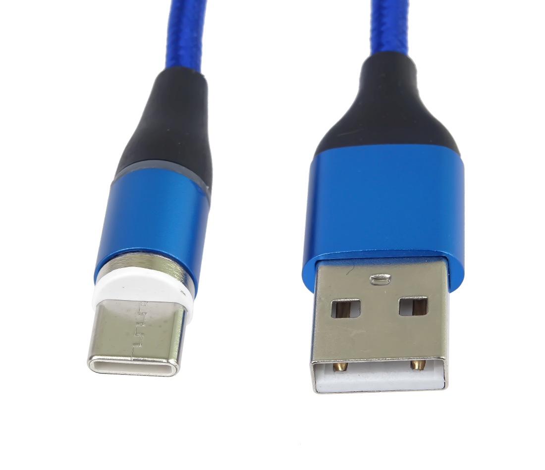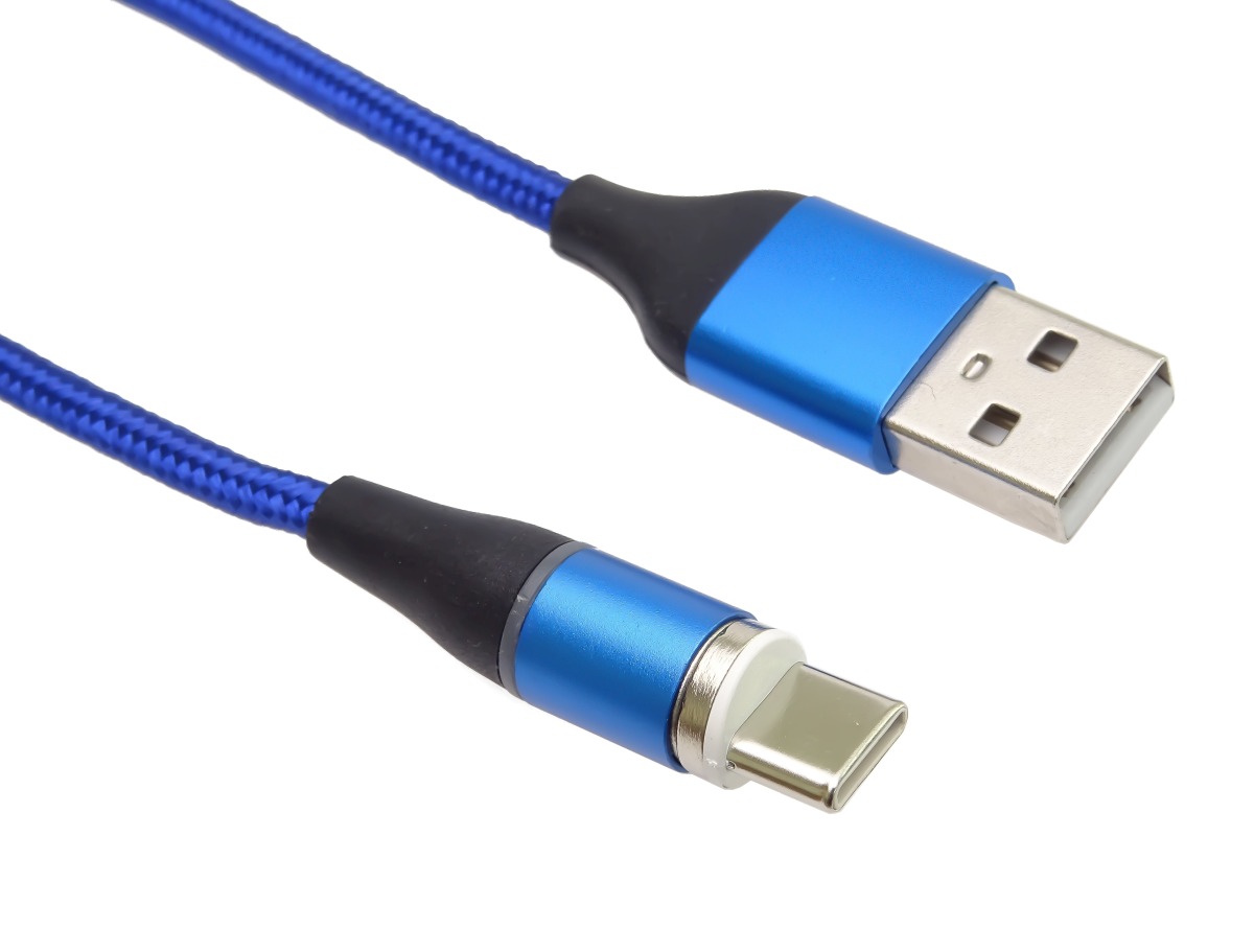 PremiumCord Magnetický micro USB a USB-C nabíjecí a datový kabel 1m, modrý