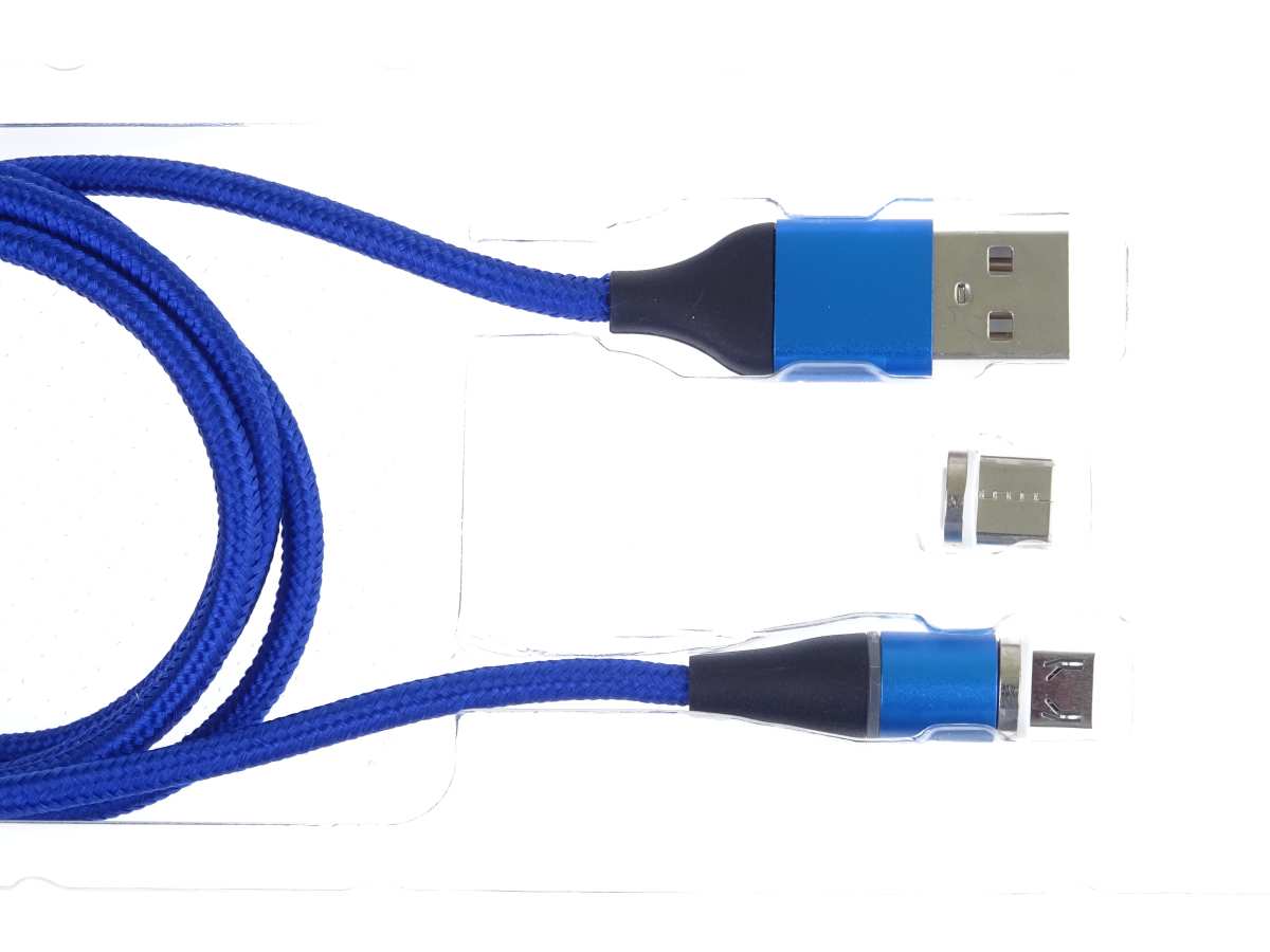 - Kabel obsahuje dvě výměnné magnetické koncovky Micro USB a USB-C