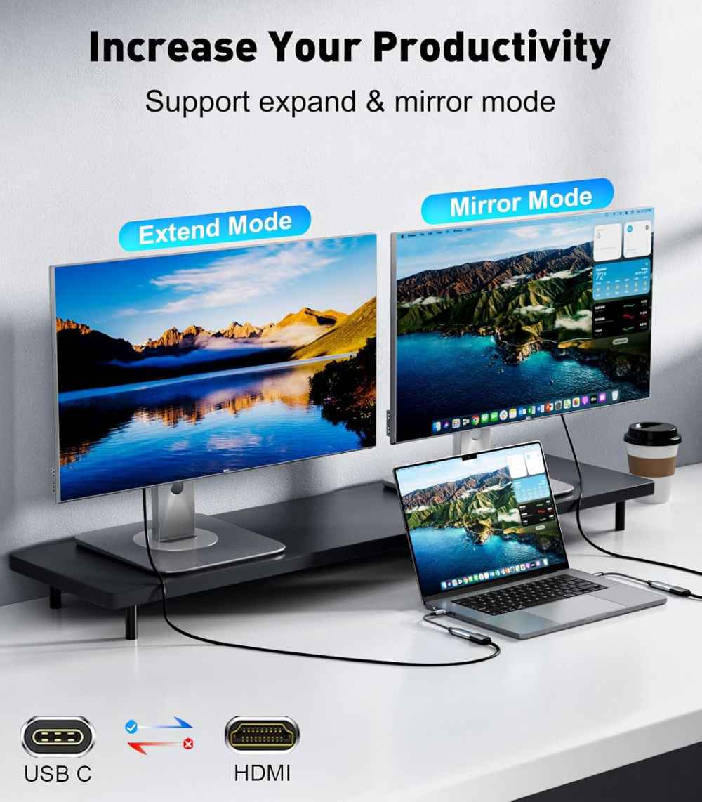 Tento adaptér umožňuje vysoce kvalitní převod videa a zvuku z USB-C na HDMI konektor pro monitor/TV/projektor. Funguje jako externí grafická karta s výstupem HDMI.