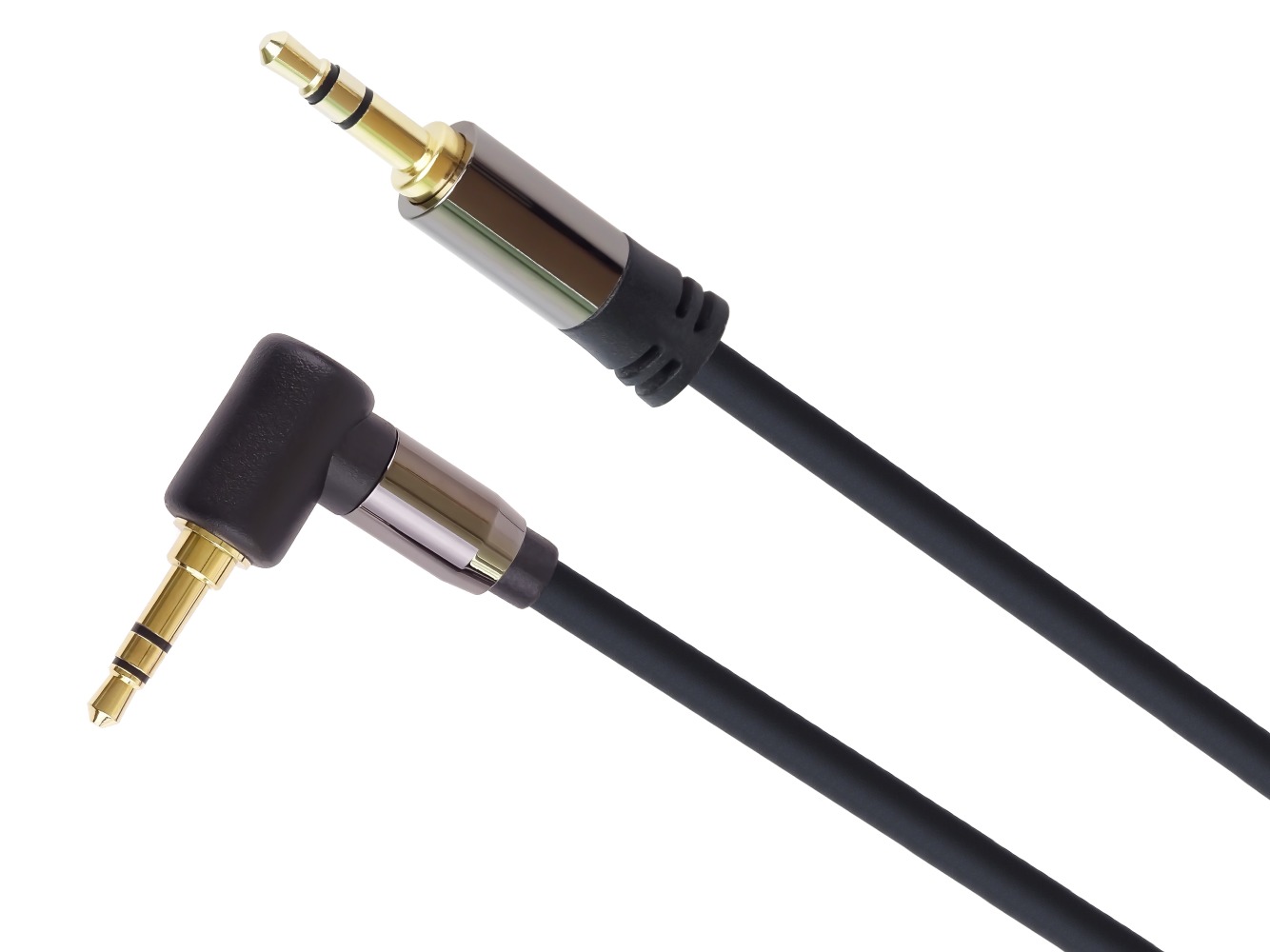PremiumCord Kabel Jack 3.5mm - 3,5mm konektor 90° M/M 5m, pro připojení zařízení s konektorem pro sluchátka ke stereo systémům, zesilovačům nebo reproduktorům s 3,5 mm RCA/AUX vstupem
