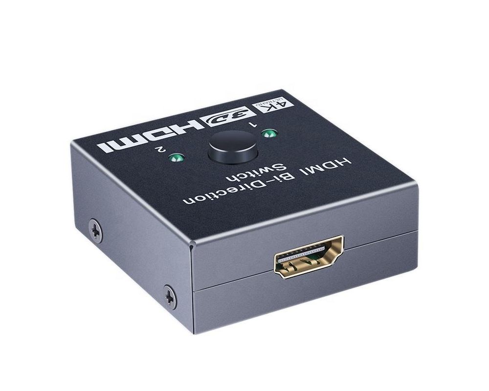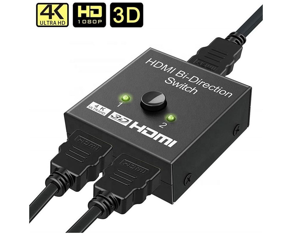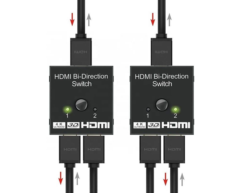 - Obousměrný 2x1 / 1x2 Přepínač HDMI lze použít dvěma různými způsoby: připojit 2 vstupní zdroje s 1 výstupním displejem nebo 1 vstupní zdroj se 2 displeji (funguje pouze na 1 obrazovce, nikoli současně).