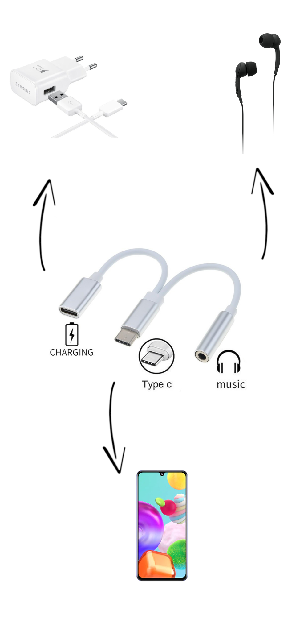 - Umožňuje připojení sluchátek s 3,5 mm jack konektorem ke smartphonům s USB-C konektorem a současné nabíjení telefonu přes USB-C
