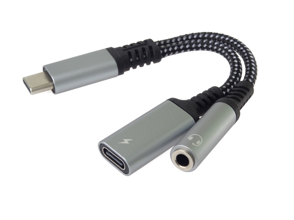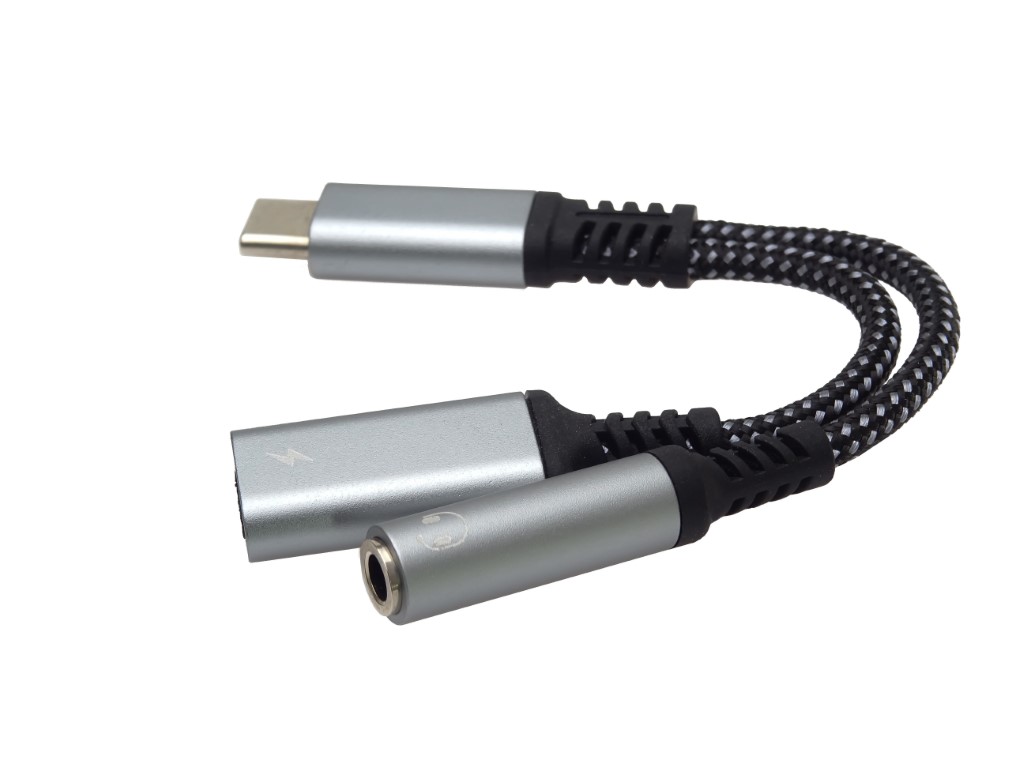 Tento adaptér umožňuje převod a výstup audio signálu na sluchátka na konektor jack 3,5mm a současně nabíjení zařízení s USB typ C konektoru