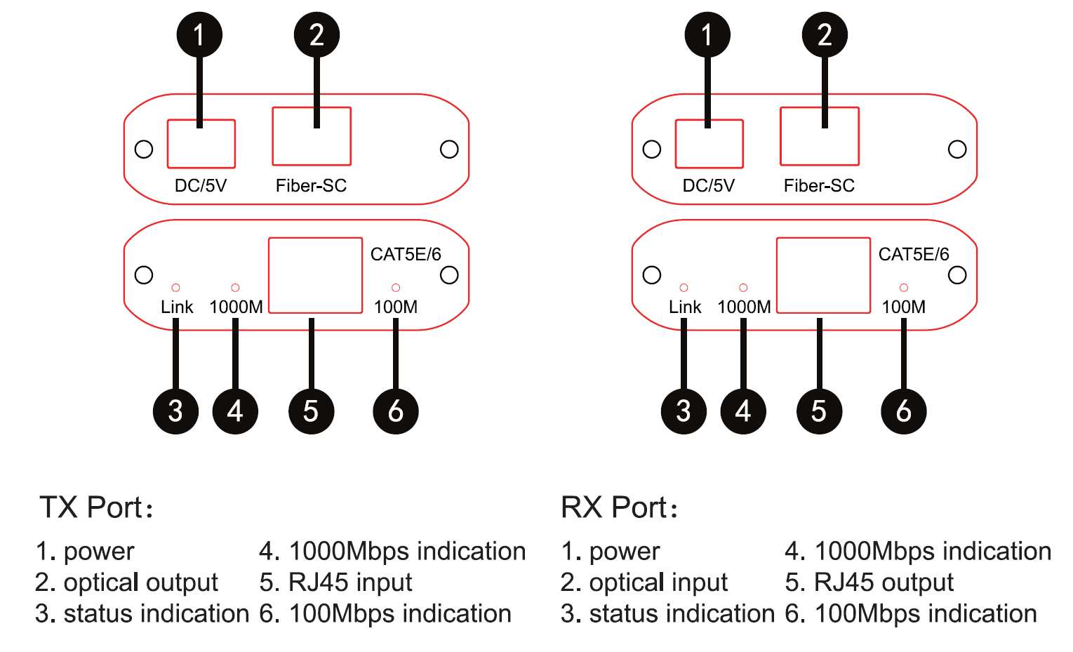 - SC port a použití single-mode jednožilového optického kabelu, vzdálenost přenosu až 20 km.