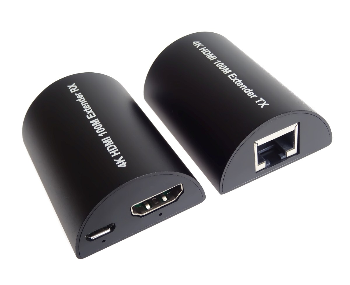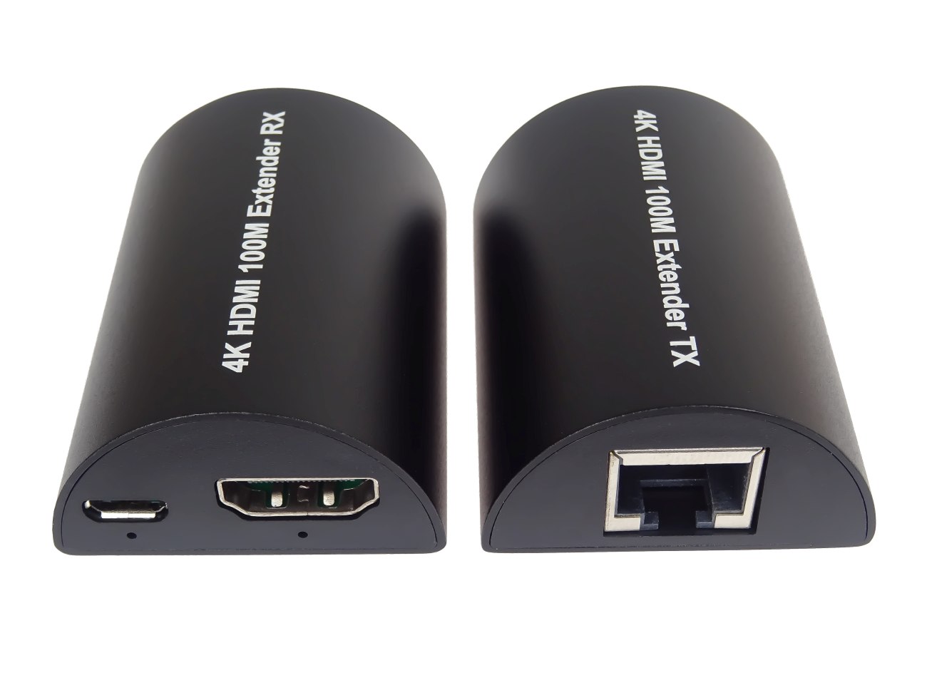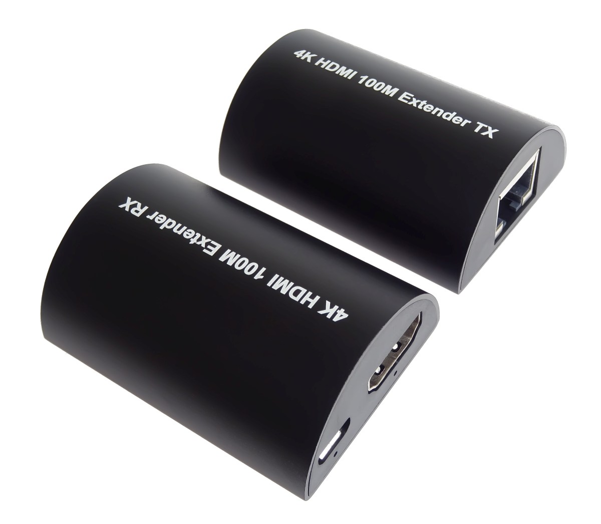 4K HDMI extender na 100m přes Cat5e/Cat6, zařízení umožňuje po jednom síťovém kabelu přenést HDMI signál v rozlišení 4K@30Hz nebo FULL HD 1080p až na 100m.Dále přenáší IR signály pro dálkové ovládání. Vysílač a přijímač má audio výstup pro zesilovač.