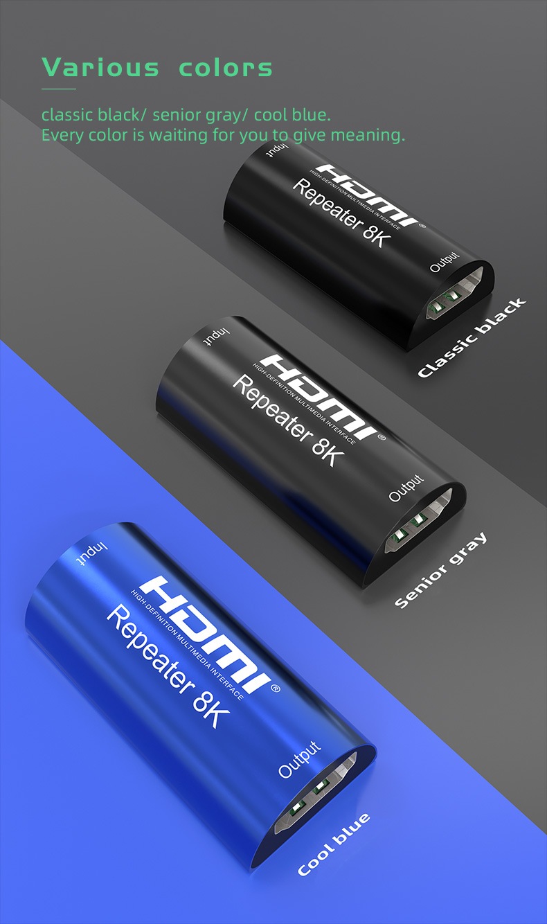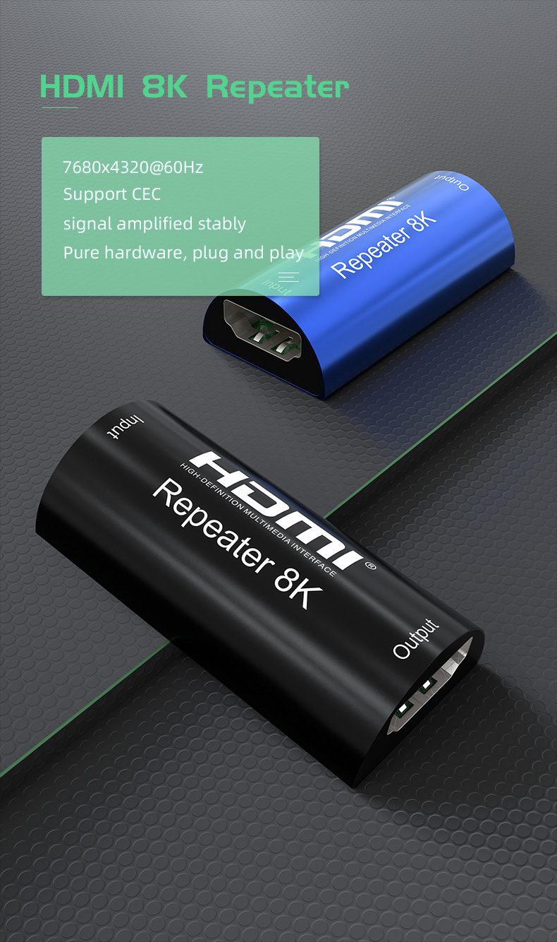 Repeater se zapojuje doprostřed mezi dva kabely, nejlépe stejné délky. HDMI kabely délky 10m až 15m musí mít měděné vodiče o průřezu 24AWG.