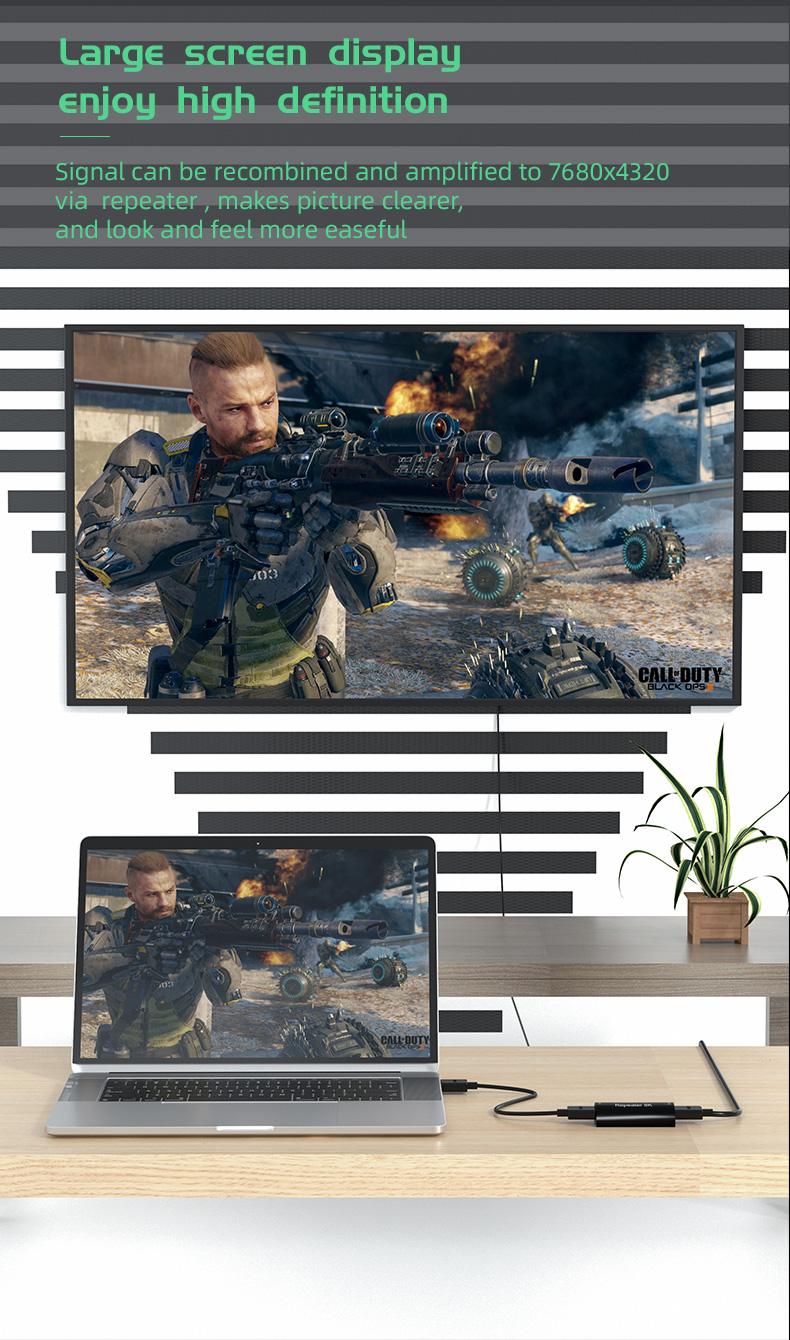 - Podporuje nejvyšší rozlišení 8K@60Hz (7680x4320/60Hz ), 4K@120Hz ( 3840x2160/120Hz ), FULL HD 1080p