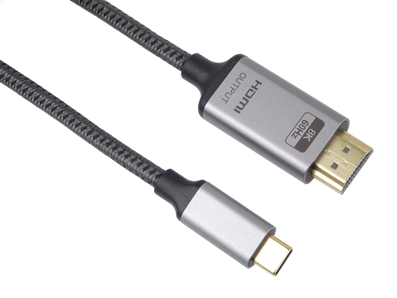 PremiumCord Adaptér USB-C na HDMI rozlišení obrazu 8K@60Hz,4K@144Hz Aluminium, 20cm, adaptér umožňuje vysoce kvalitní převod videa a zvuku z USB-C na HDMI konektor pro monitor/TV/projektor. Funguje jako externí grafická karta s výstupem HDMI.