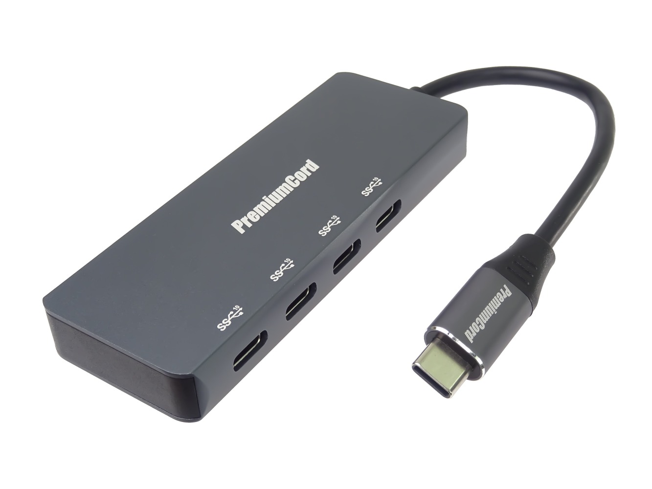 PremiumCord 10G SuperSpeed Hub USB-C na 4x USB 3.2 C Aluminum