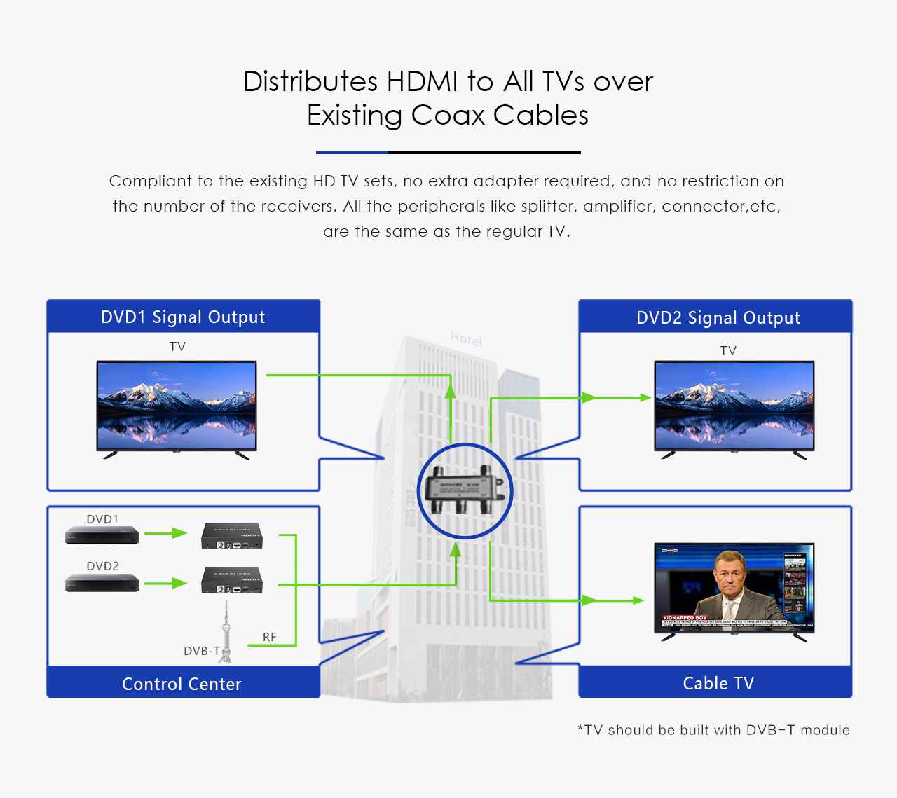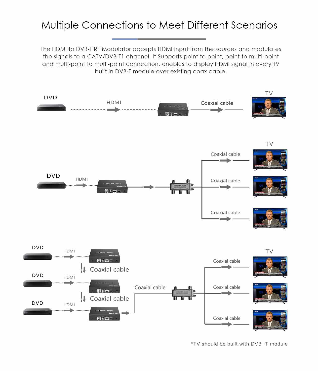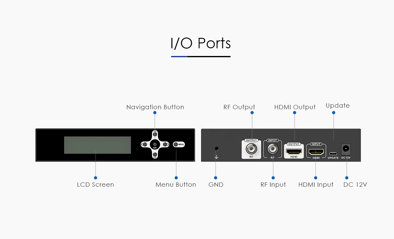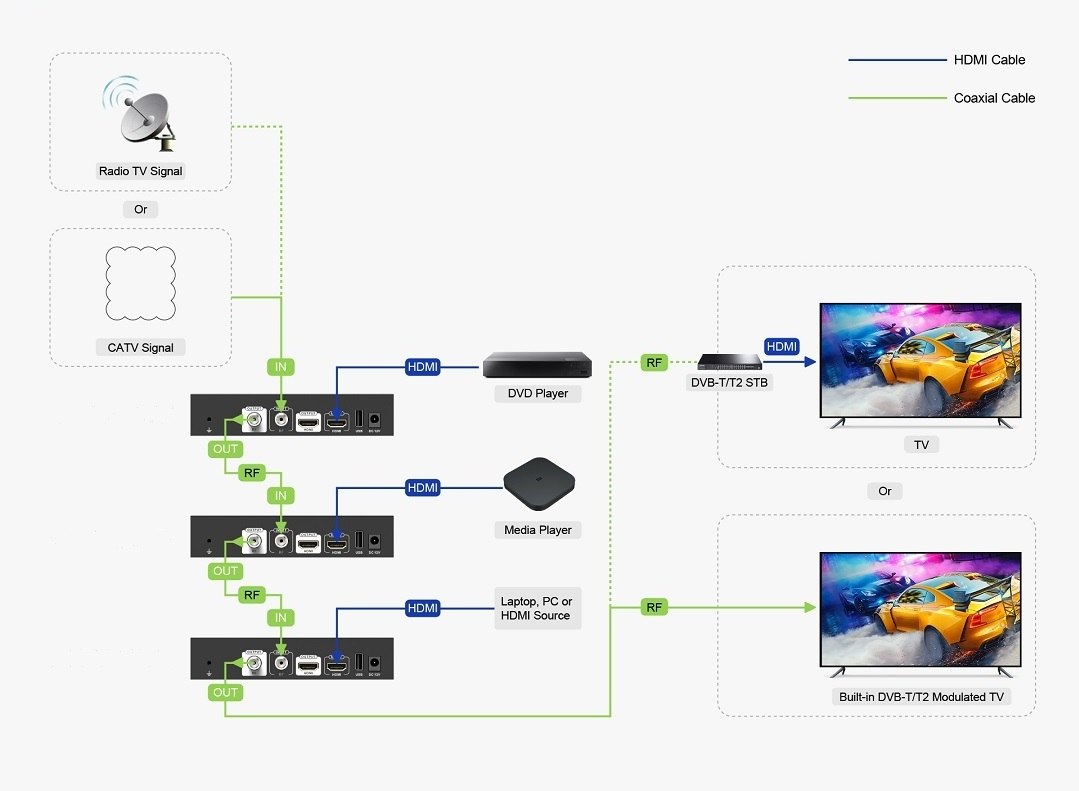 Slouží k převodu nekomprimovaného obrazového a zvukového signálu v digitálním formátu připojeného na rozhraní HDMI na komprimovaný video signál MPEG-2 FULL HD (H.264) a jeho modulaci na výstupní DVB-T kanál.