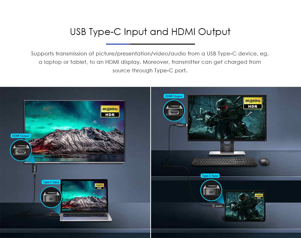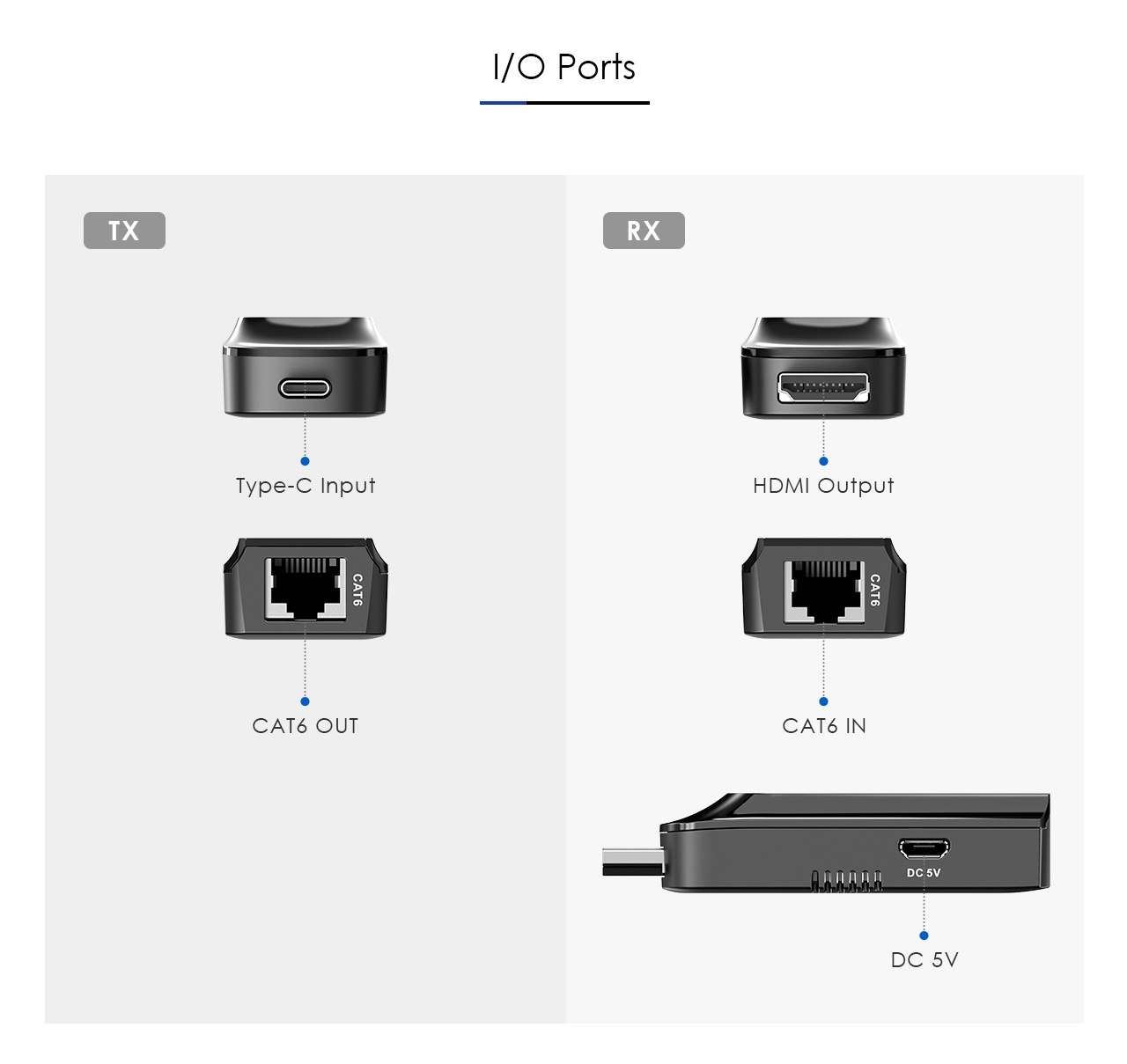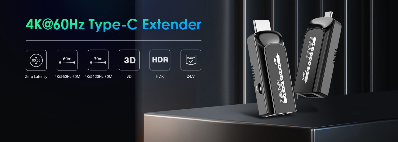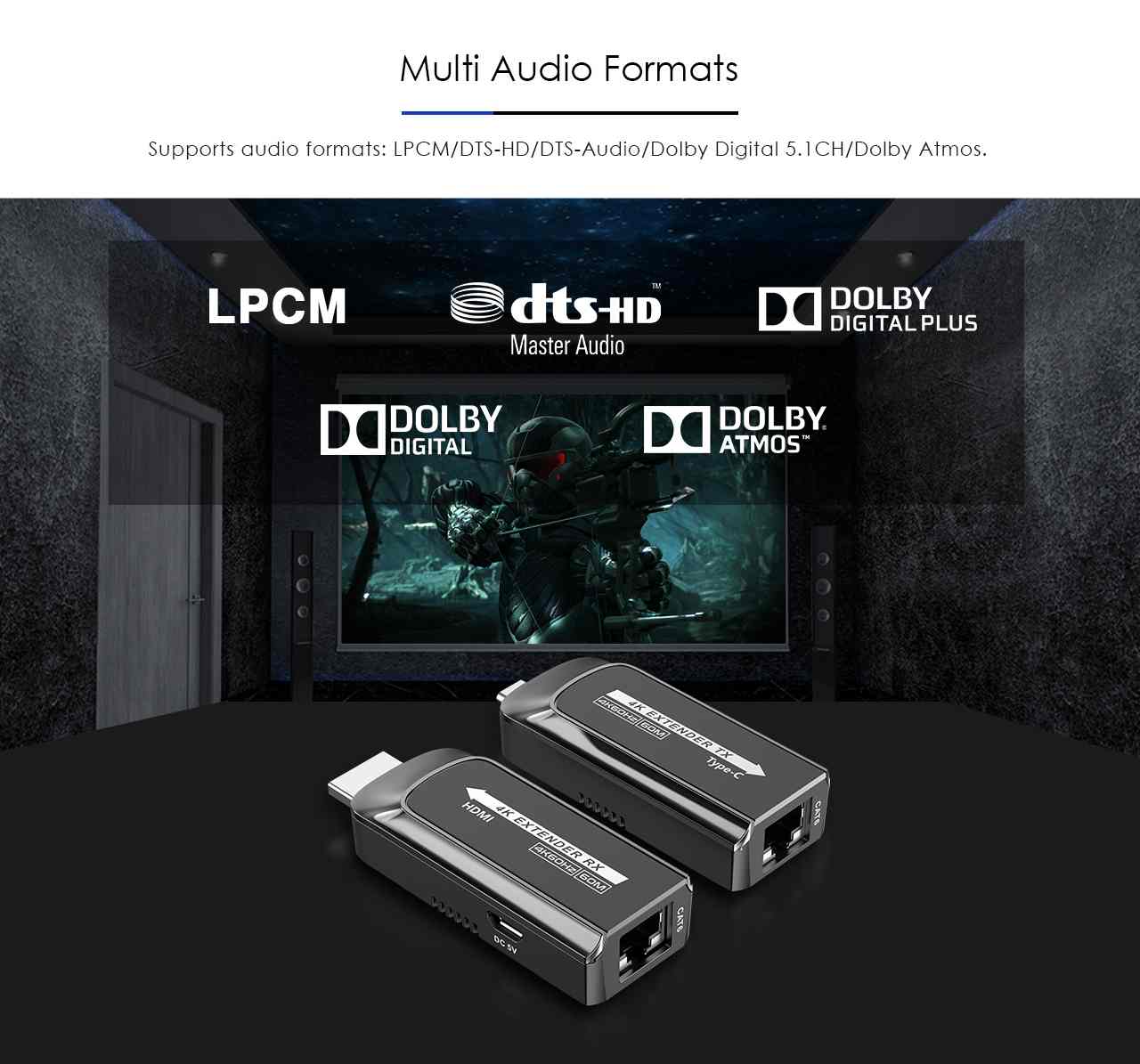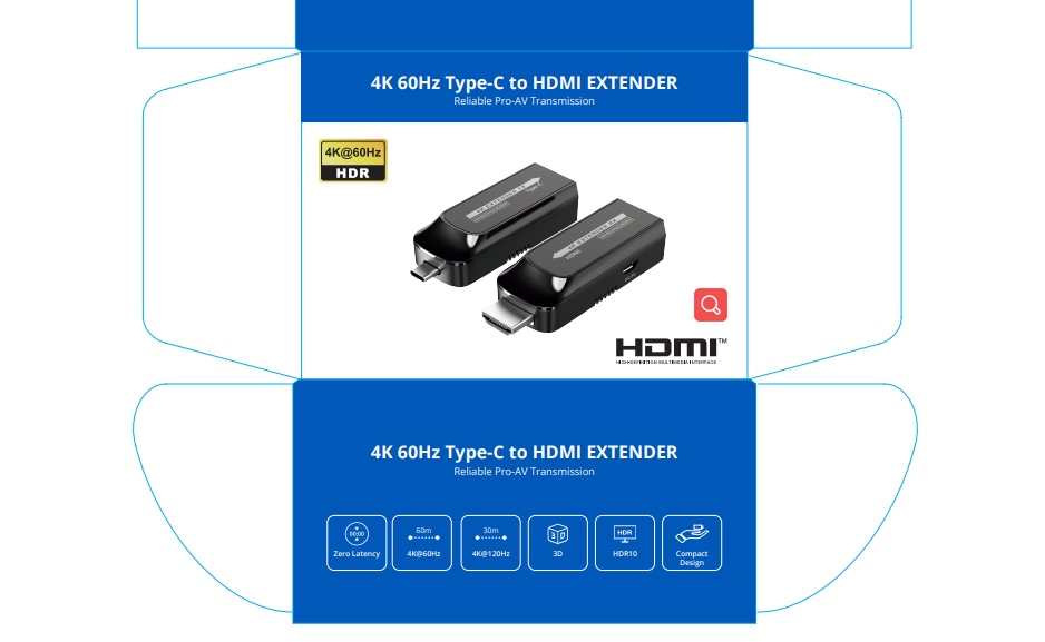 Zařízení umožňuje po jednom síťovém kabelu bez zpoždění přenést audio a video signál o vysokém rozlišení a zobrazit na HDMI monitoru nebo projektoru na vzdálenost 60m.