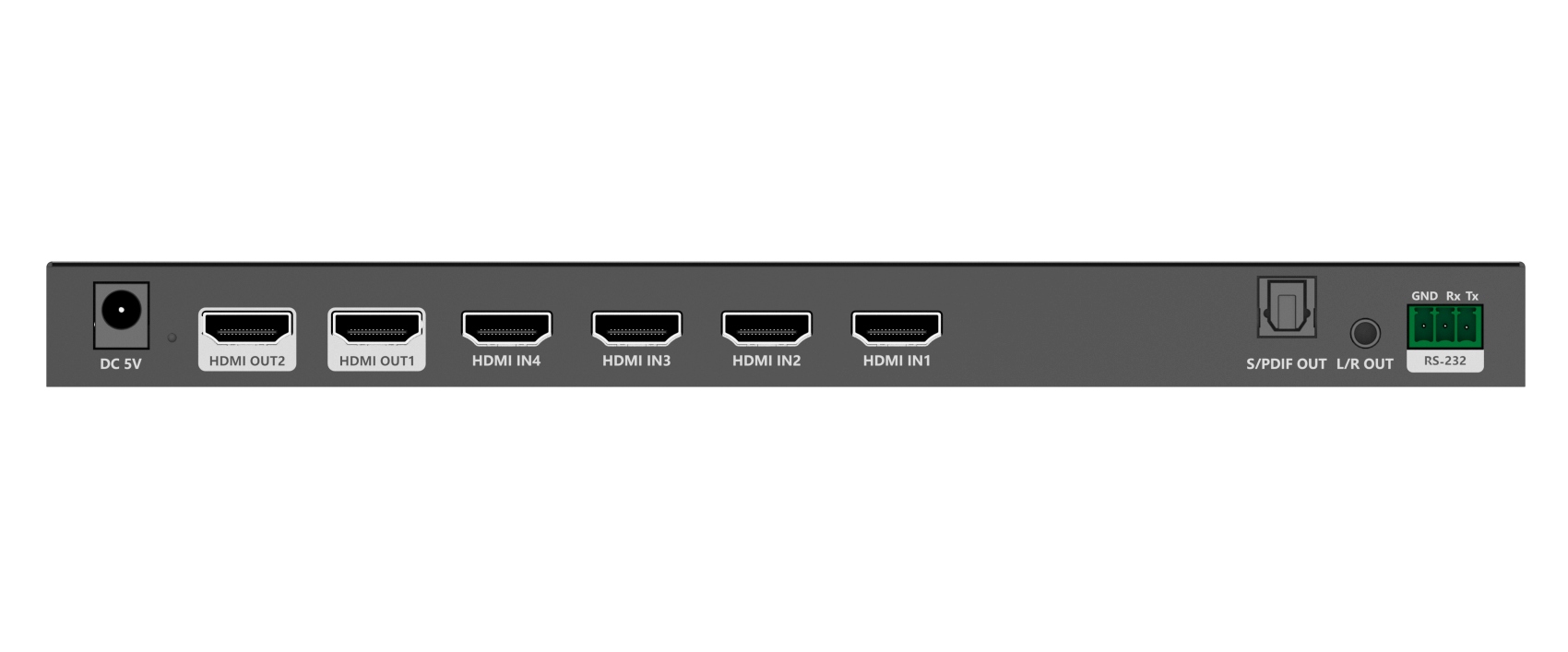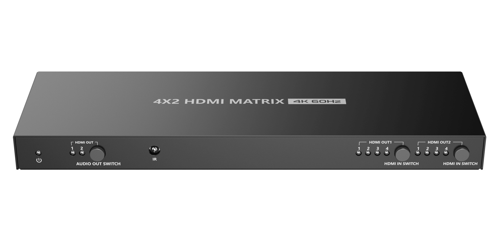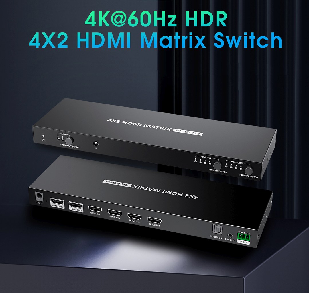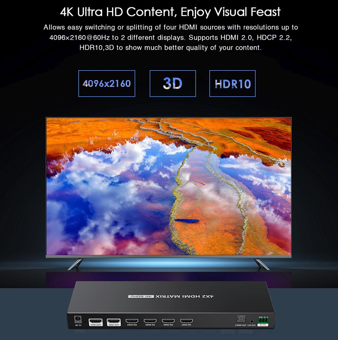 Umožní propojit více zdrojů signálu, 4 vstupy HDMI na 2 výstupy HDMI.