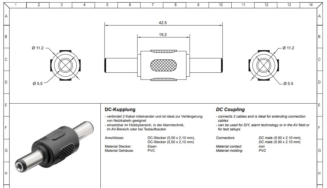 DC samec (5,50 x 2,10 mm) - DC samec (5,50 x 2,10 mm) rychlospojka