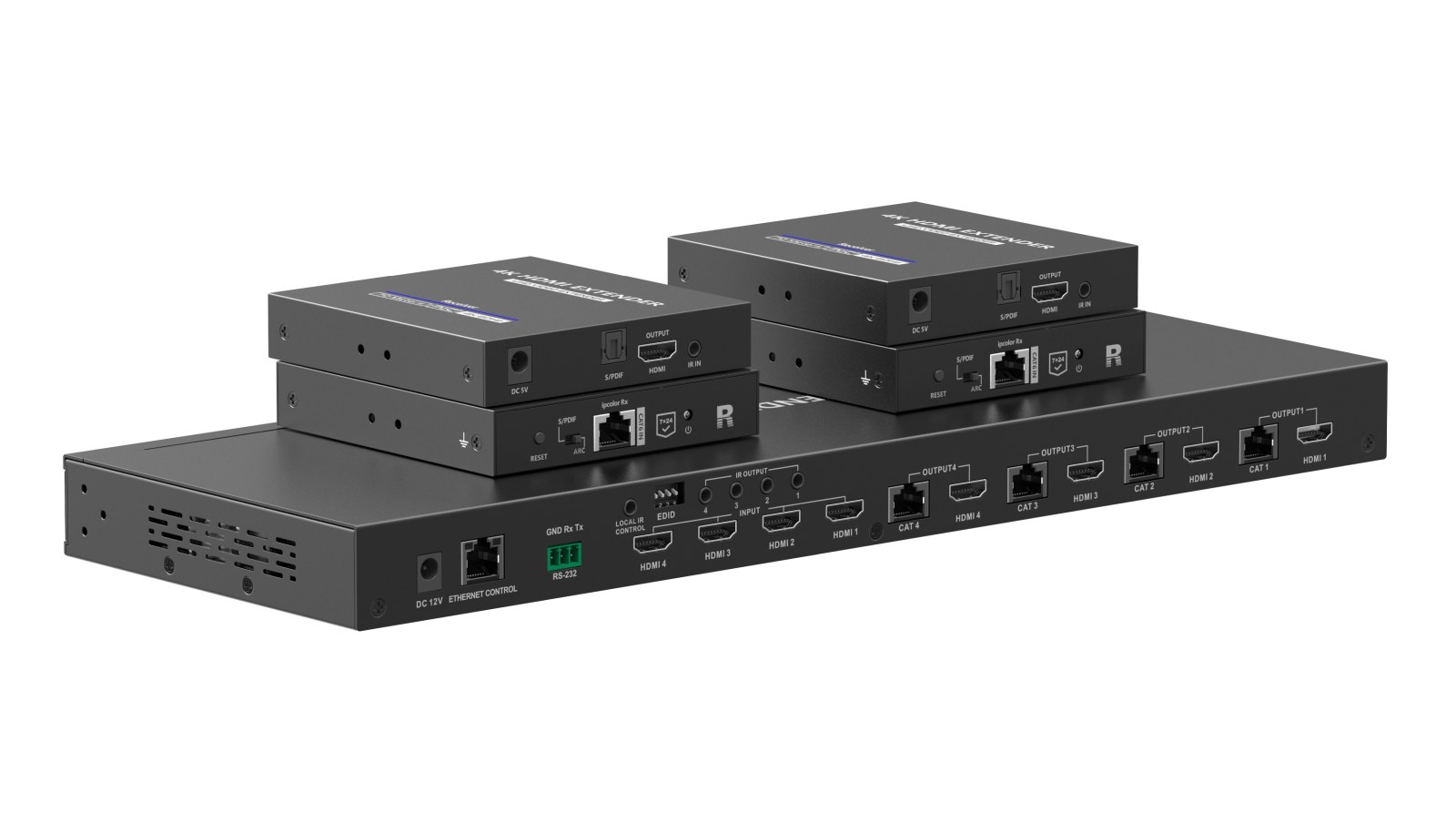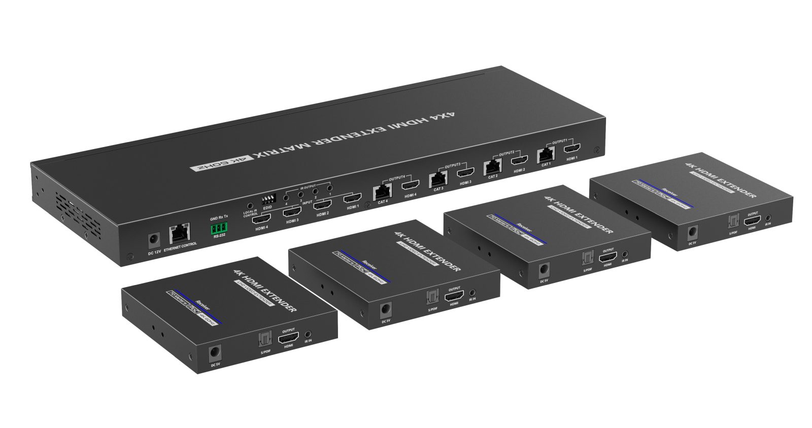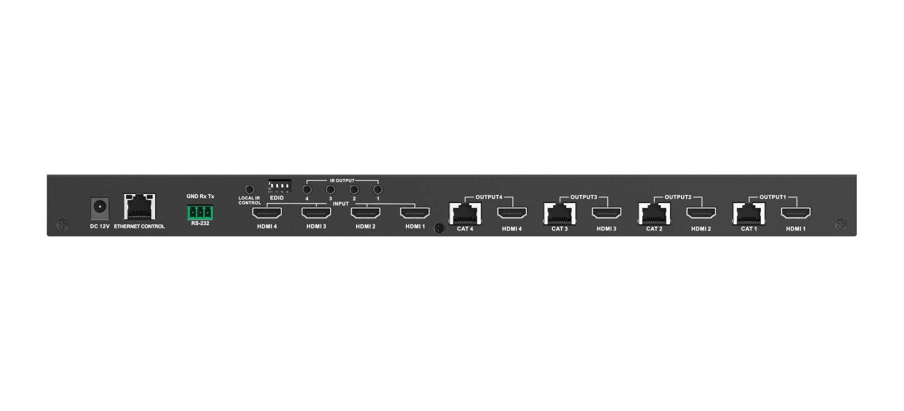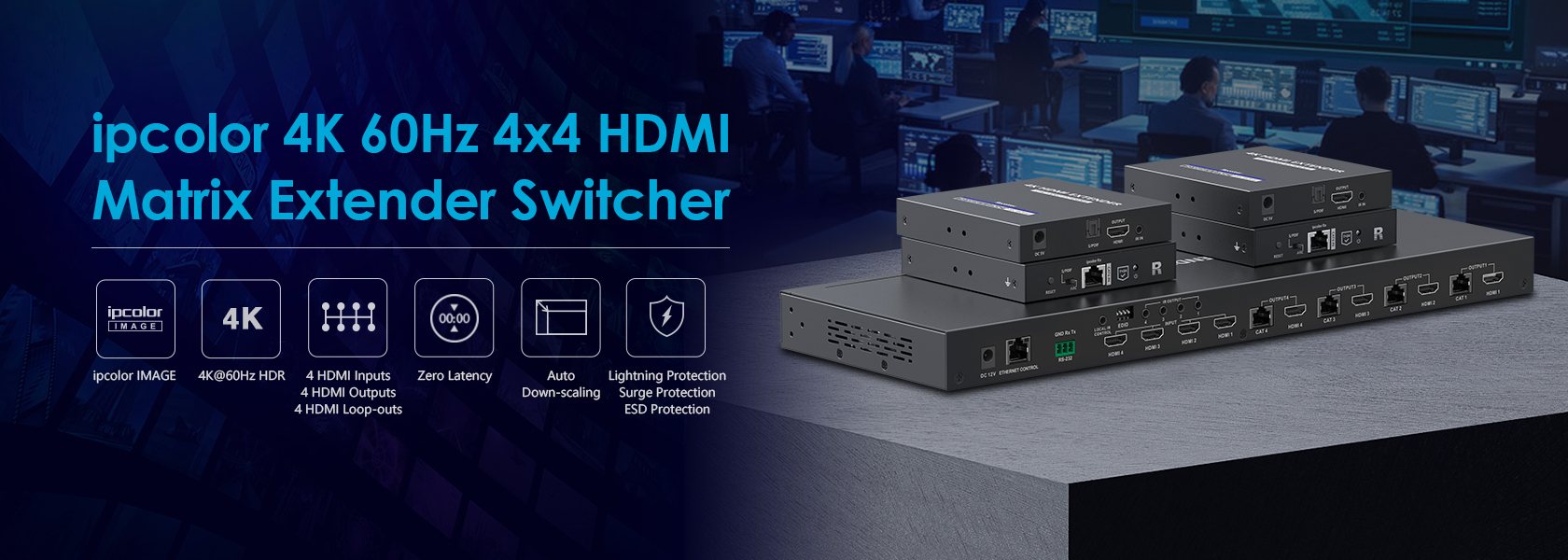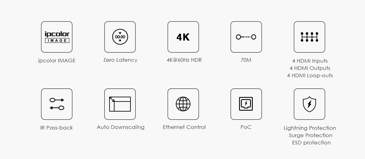 Umožní přepínat a propojit čtyři zdroje HDMI signálu na 4 HDMI zobrazovače, monitory na velkou vzdálenost až 70m pomocí UTP kabelu a navíc 4 lokální monitory