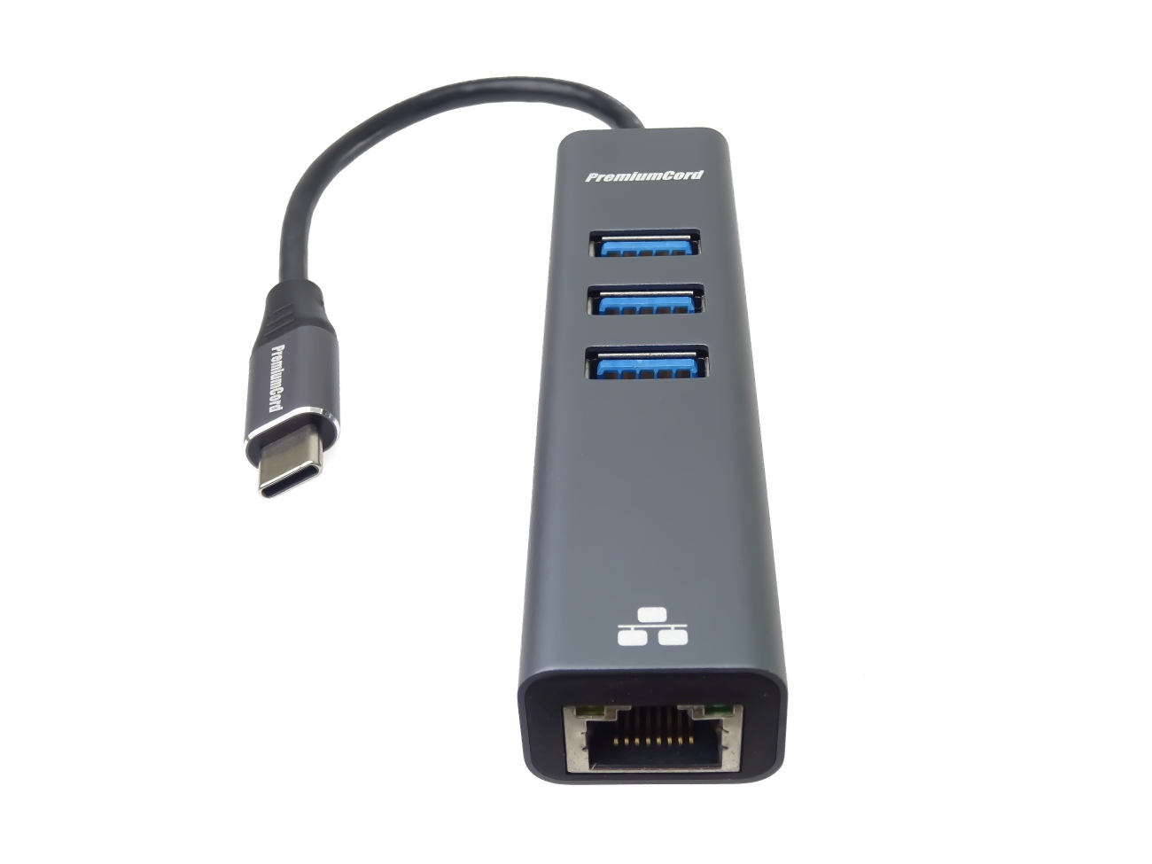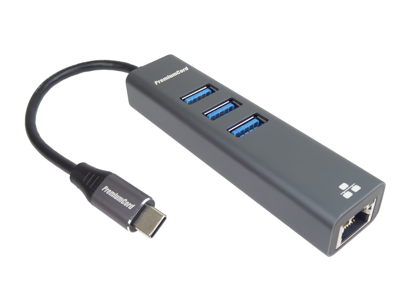 PremiumCord Adapter USB-C na Gigabit 10/100/1000Mbps + 3x USB3.2 konektor