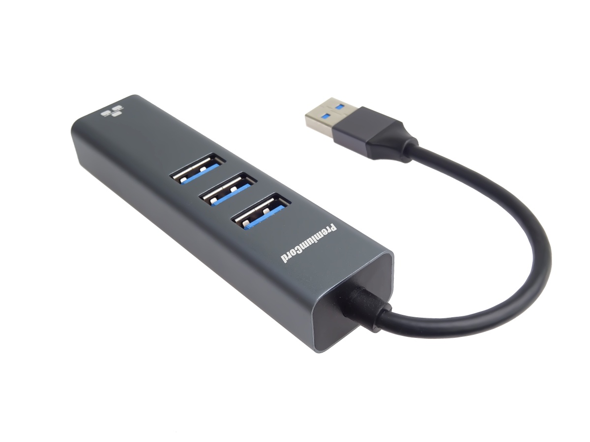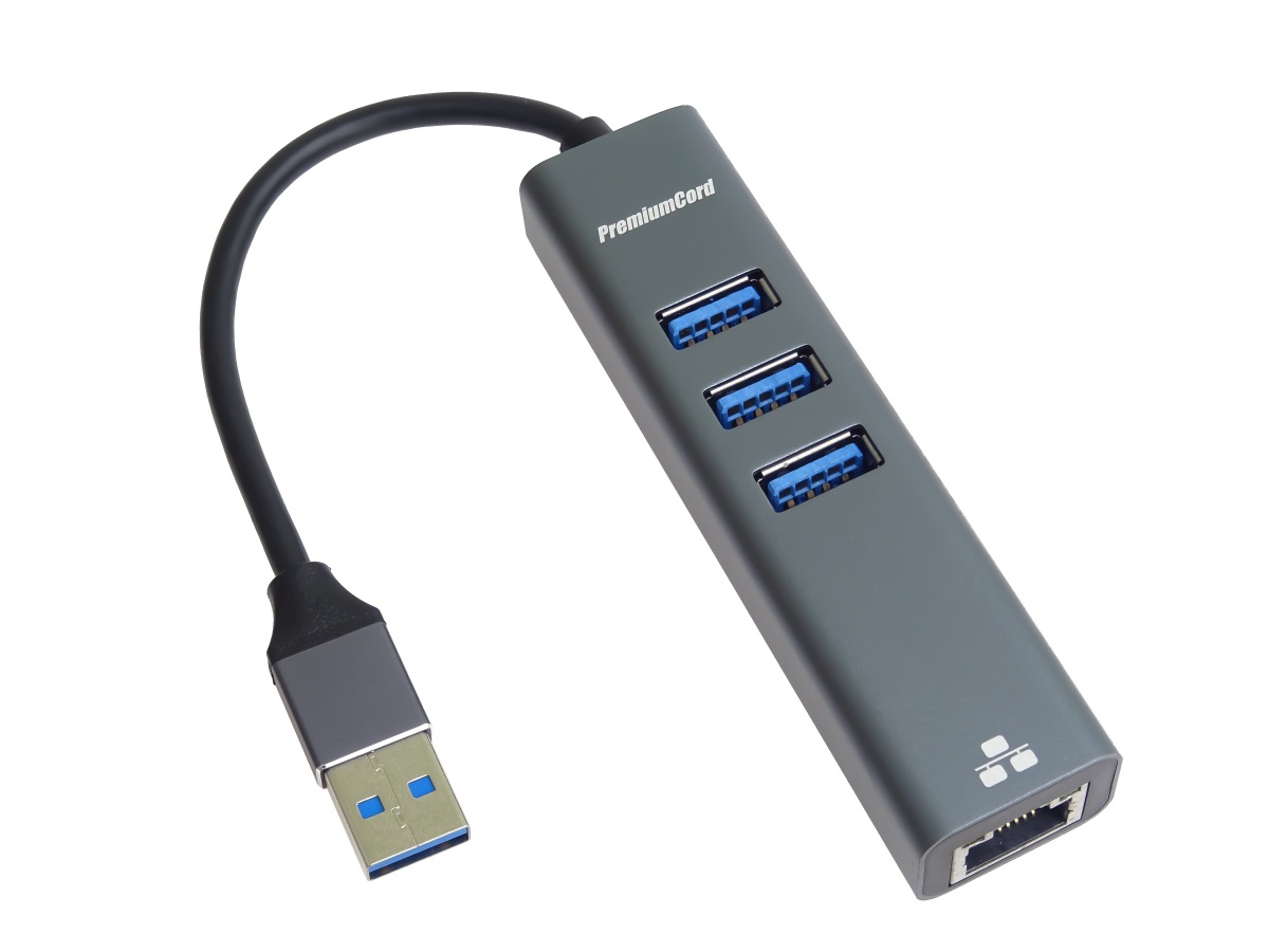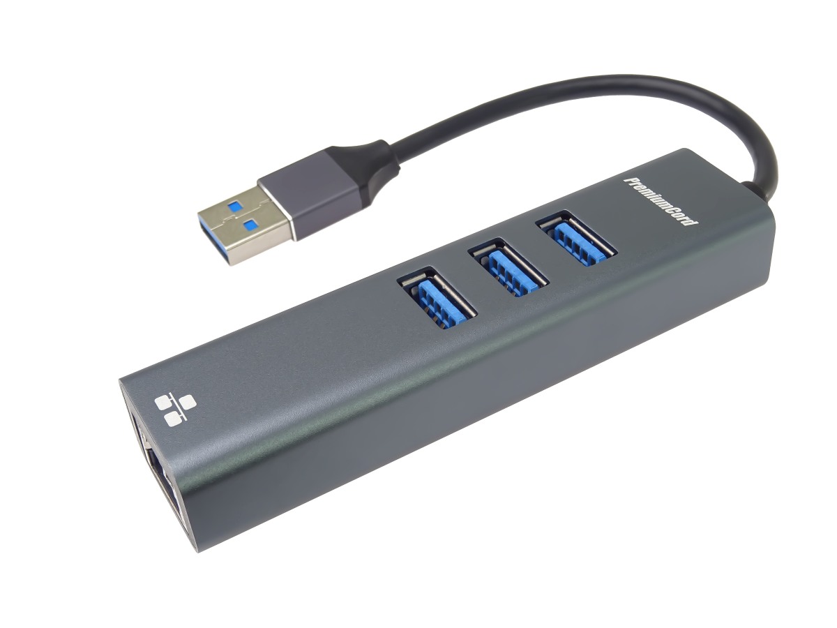 PremiumCord adaptér USB3.2 -> LAN RJ45 ETHERNET 10/100/1000 MBIT + 3x USB3.2 port