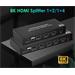 HDMI 2.1 splitter 1-4 porty, 8K@60Hz, 4K@120Hz, 1080p, HDR+ zapojí čtyři HDMI obrazovky k jednomu HDMI zdroji signálu jako je PC, notebook, DVD, set top box, EDID down-scaling umožňuje připojit na výstupu monitory s rozlišením 8K, 4K nebo 1080p