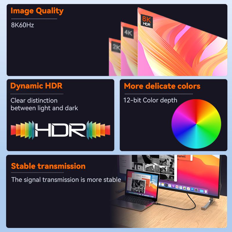 - Maximální rozlišení: Ultra HD 8K@60hz, 4K@120Hz, YUV 4:4:4