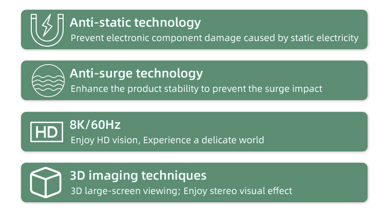 - Rozlišení: 8K@60hz, 4K@120Hz, 1080p