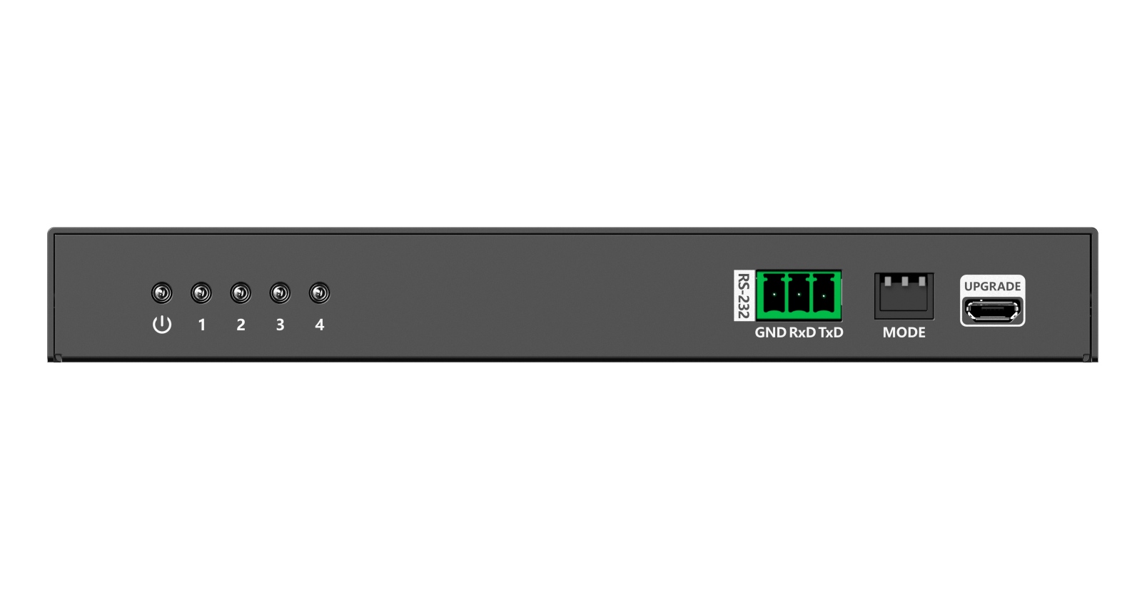 - Na čelním panelu LED signalizace power a 4xLED zapojení výstupních monitorů