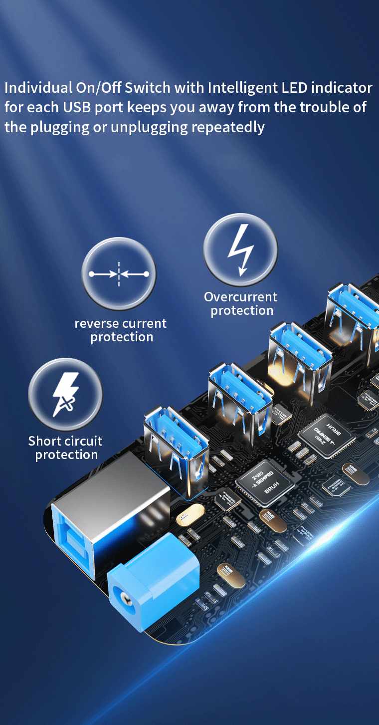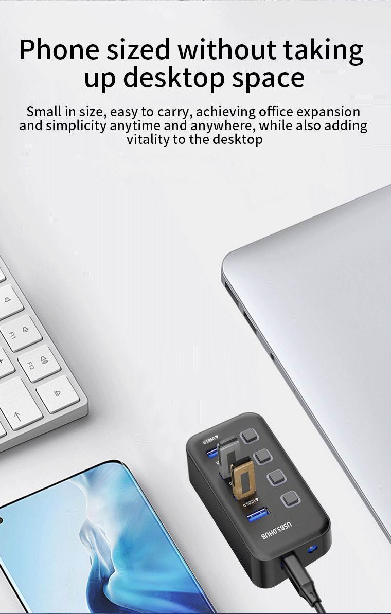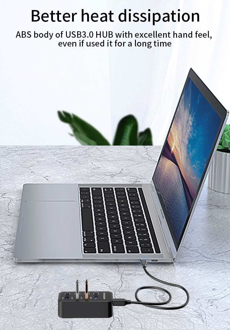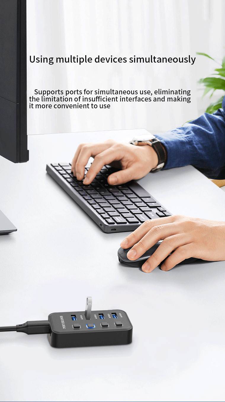 Hub umožní připojit do jednoho portu USB až 4 další zařízení USB. Zařízení je USB3.2 s rychlostí až 5Gbps. Pomocí vypínačů je možné jednotlivé USB periferie připojovat a odpojovat. Vhodné pro zařízení jako USB flash disky, klávesnice, myši, přenosné pevné disky, čtečky karet, tiskárny, USB periferie jako větráky, jako zdroj pro nabíjení z USB