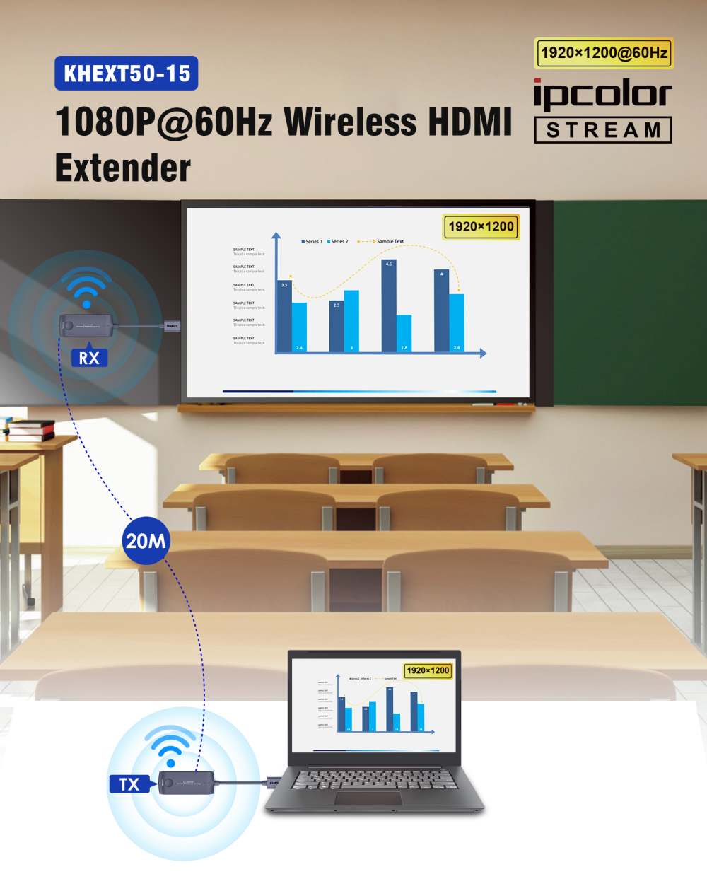 - Poporuje bezdrátový přenos rozlišení Full HD 1080p na vzdálenost až 20m