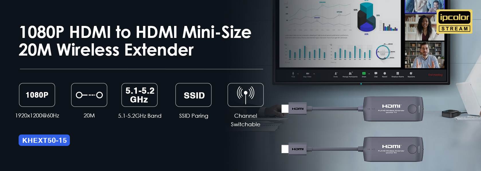 - Bezdrátový vysílač a přijímač signálu HDMI pro spojení na 20m